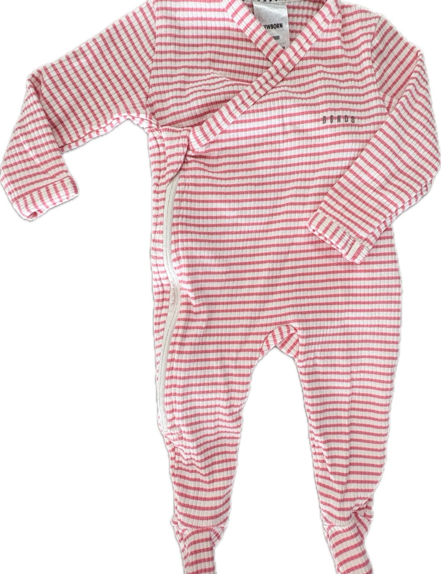 Bonds, Wide Needle Rib Coverall Pink/White, EUC, Size 0000 (Newborn)