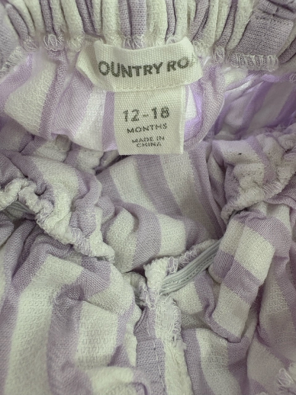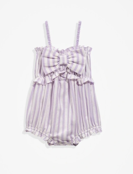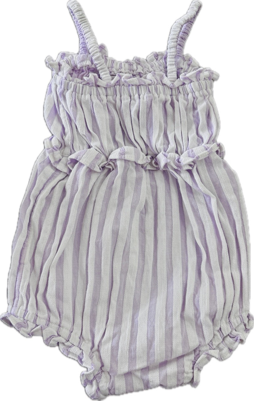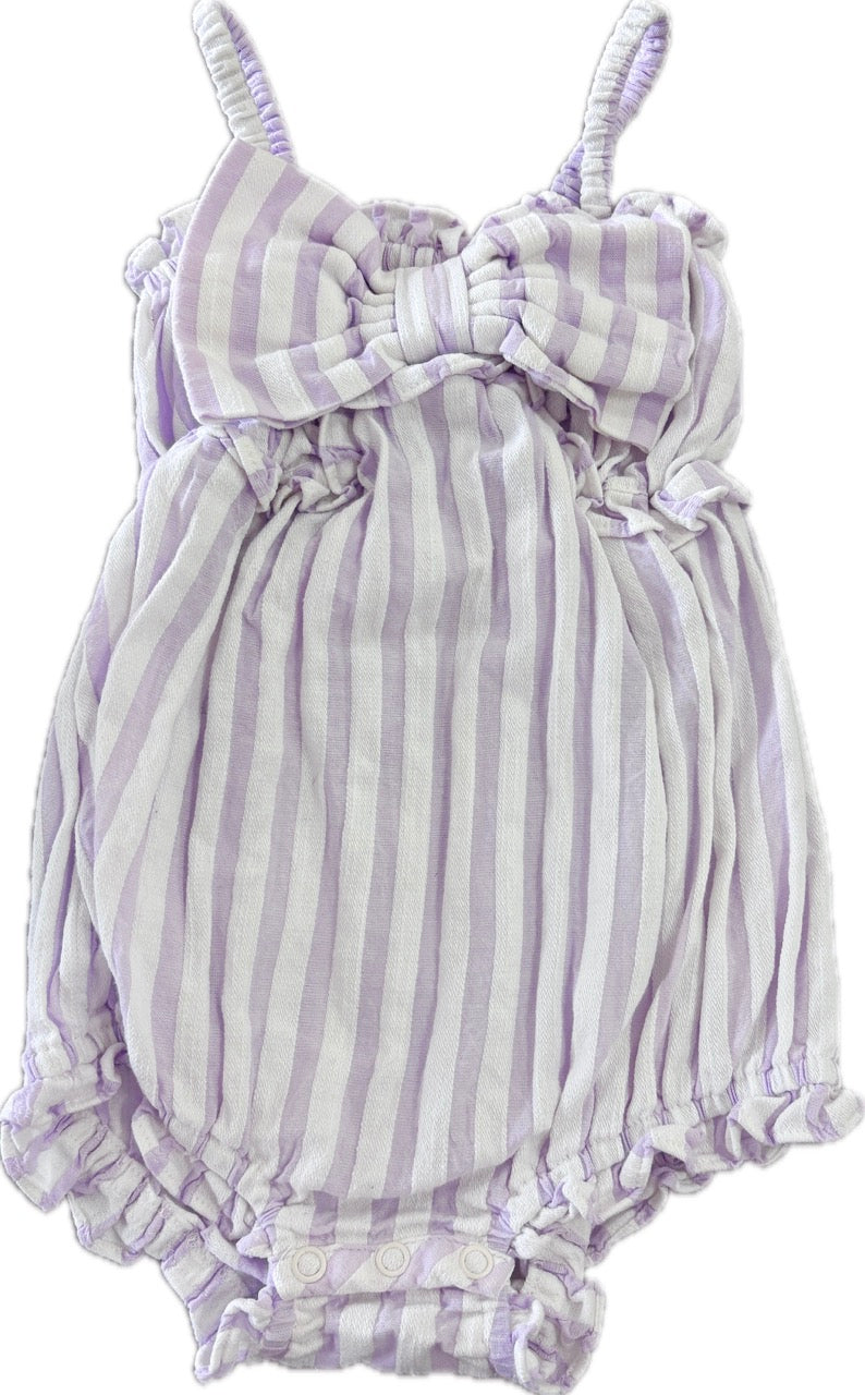 Country Road, Bow Romper in Lilac Stripe, EUC, Size 1 (12-18m)