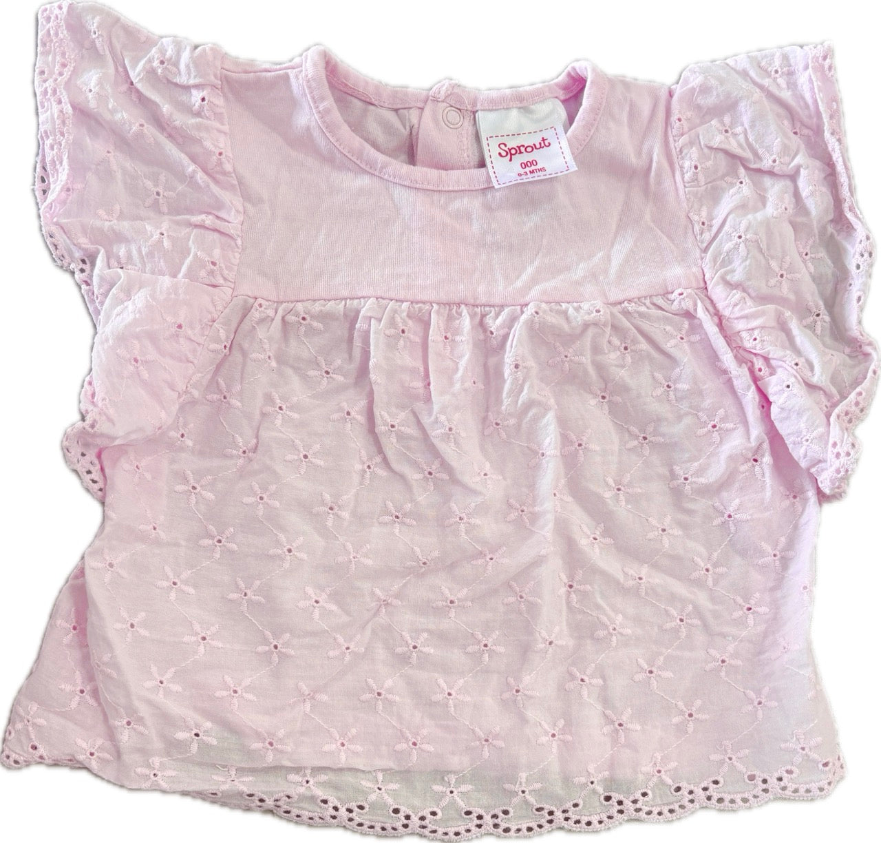 Sprout, Girls Flutter Sleeve Pink Top, EUC, Size 000 (0-3m)