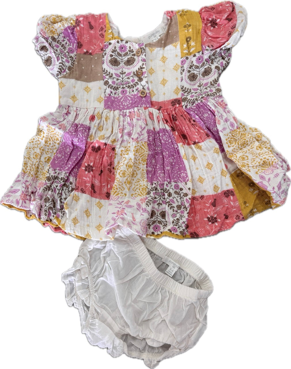 Purebaby, Patchwork Dress with Bloomer, EUC, Size 00