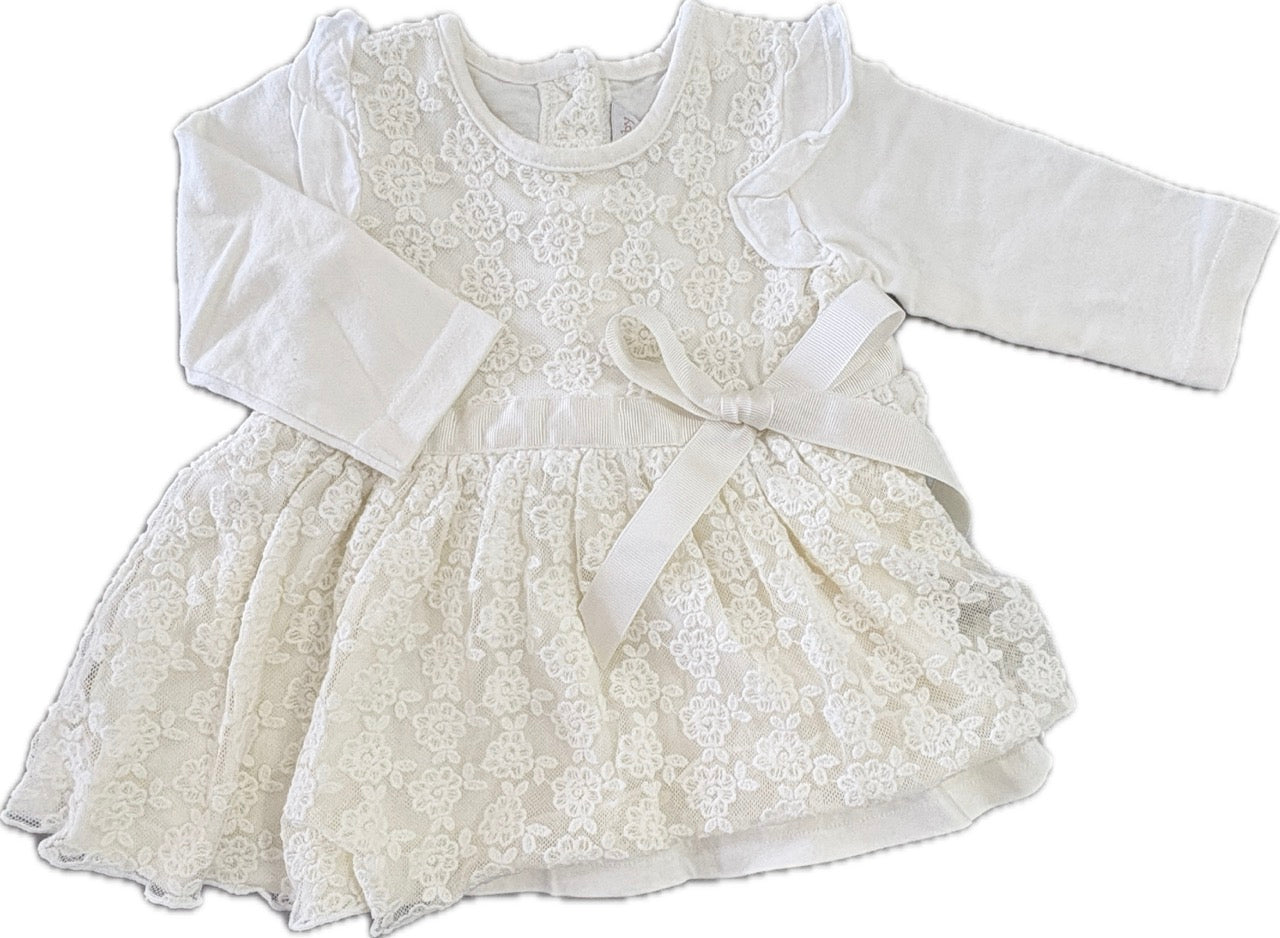 Fox & Finch, Girls Vintage Style Cream Layered Lace Dress, EUC, Size 000 (0-3m)
