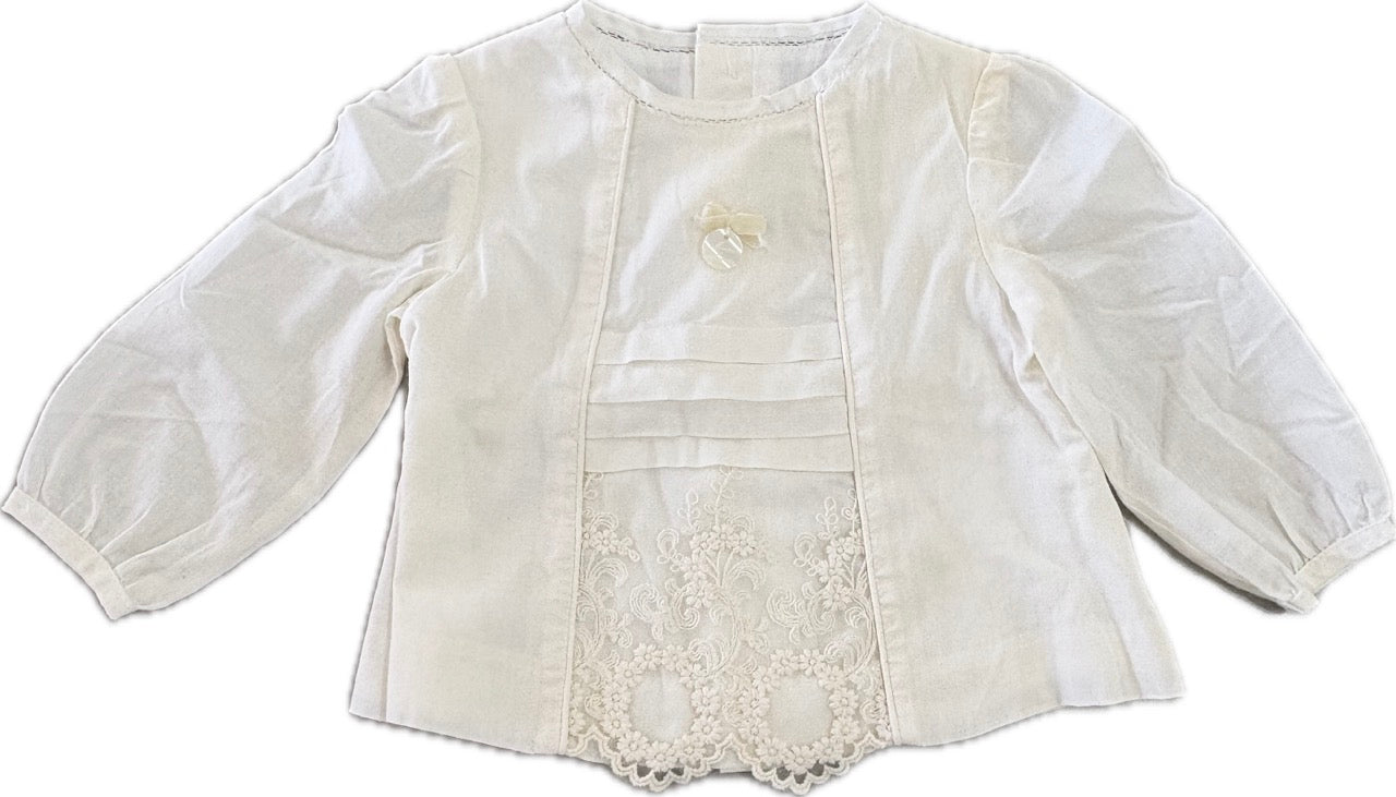 Martin Aranda, Vintage Style Delilah Pleated Lace peasant Blouse/Ivory, GUC*, Size 0 (6m)