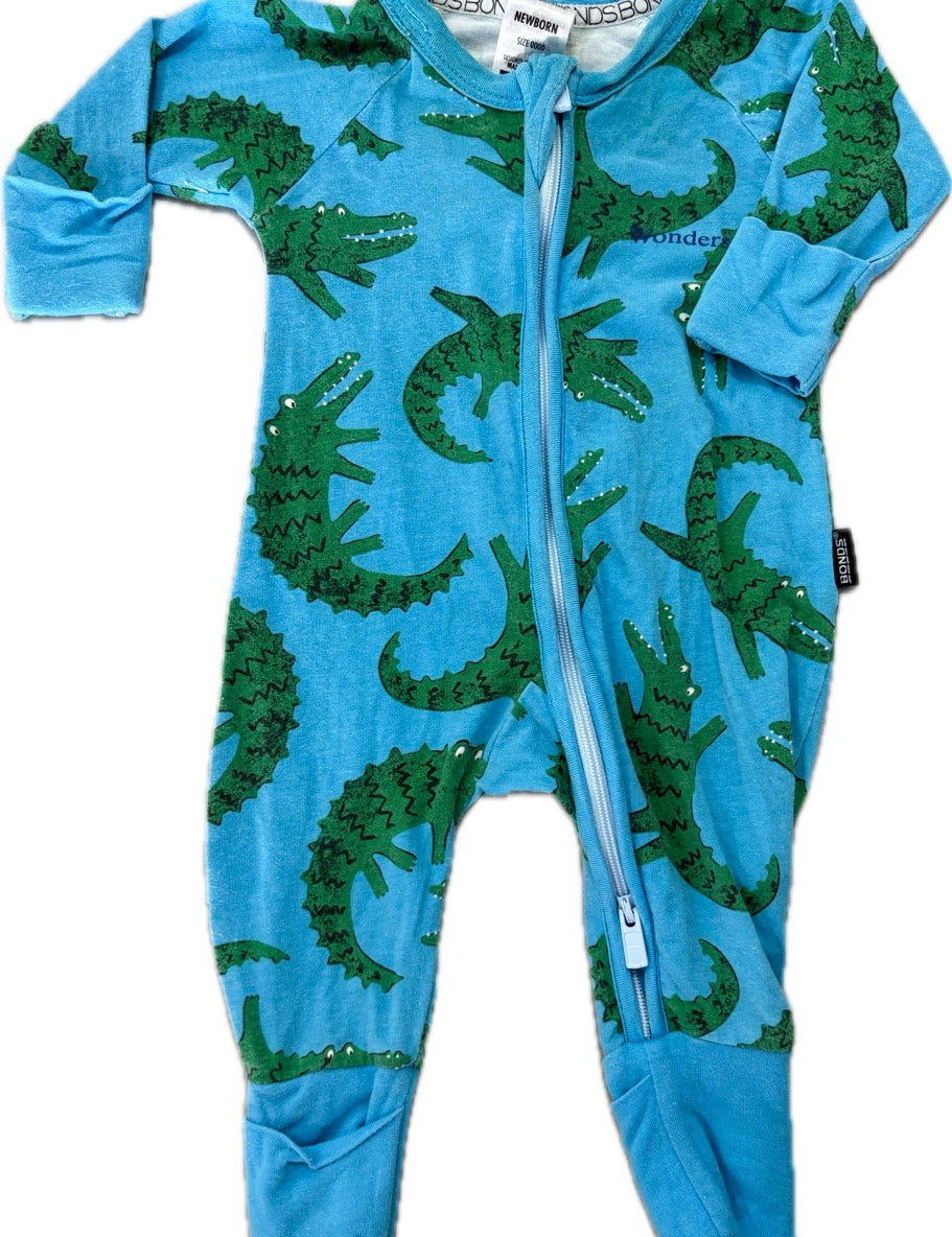 Bonds, Crocodile Blue Wondersuit, EUC, Size 0000 (Newborn)