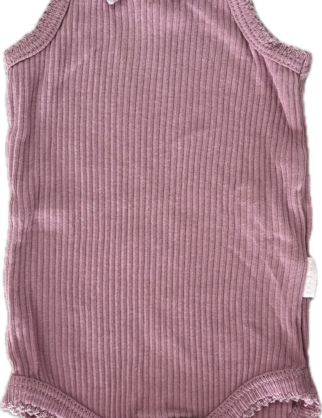 Jamie Kay, Organic Cotton Modal Elastane Singlet Bodysuit Mauve Shadow EUC, Size 000 (0-3m)