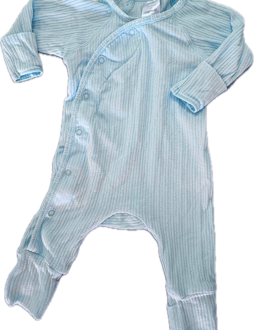 Bonds, Baby Pointelle Cozysuit in Teal, EUC, Size 0000 (Newborn)