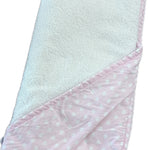 - The Hooded Towel features a lined hood for extra comfort and soft jersey polkadot print on front of the hood.