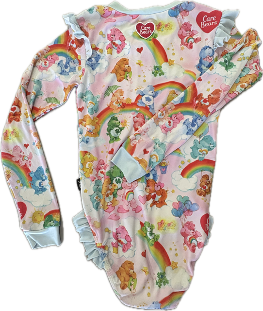Introducing the latest Care Bears x Rock Your Baby x David Jones collection. Bring on the nostalgia with this stunning, colourful collection. The Care Bears Rainbow Long Sleeve One PIece is what dreams are made of! Featuring:- Zip front- Frill shoulder and leg details- Collar and cuffs- UPF50