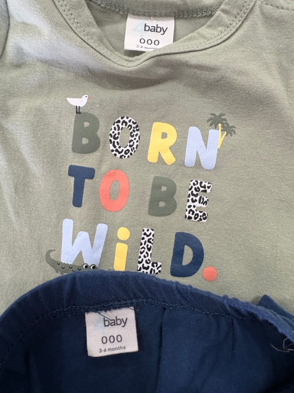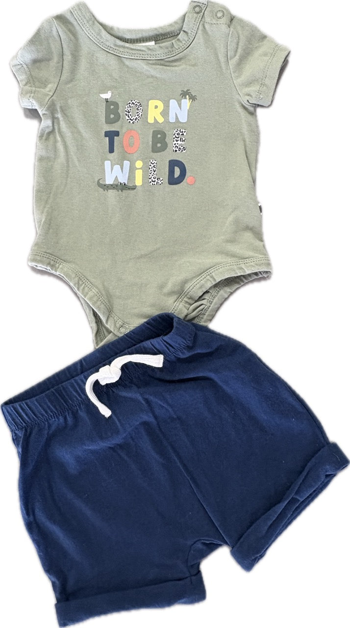 4Baby, 2 Piece Set Bodysuit And Shorts Short Sleeve B2B Wild, EUC, Size 000 (0-3m)