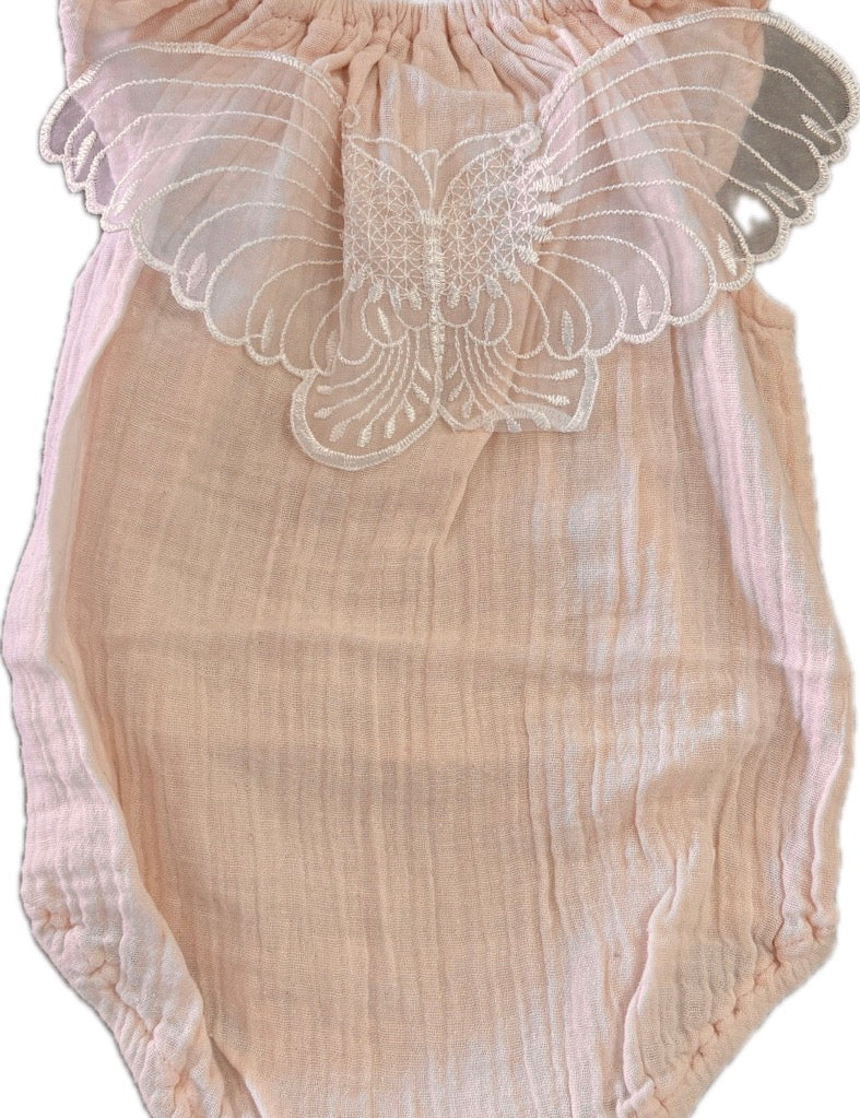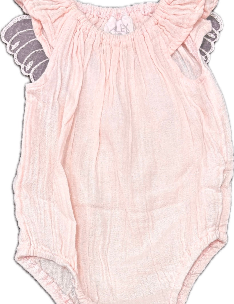 Alex & Ant, Muslin Romper w/Butterfly Wings on Back, EUC, Size 000 (0-3m)