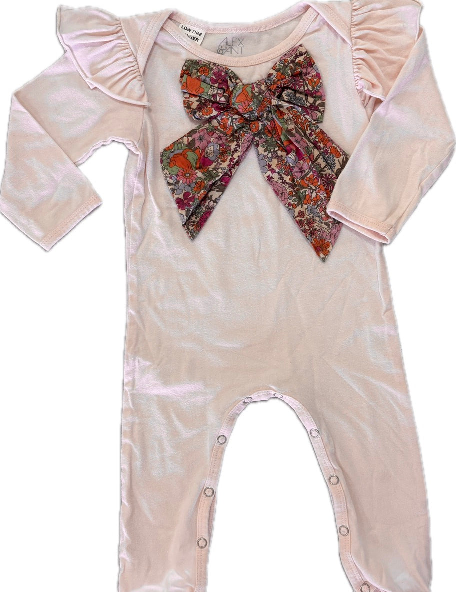 Alex & Ant, Baby Girl Romper w/Bow and Flutter Sleeves, EUC, Size 0 (9-12m)