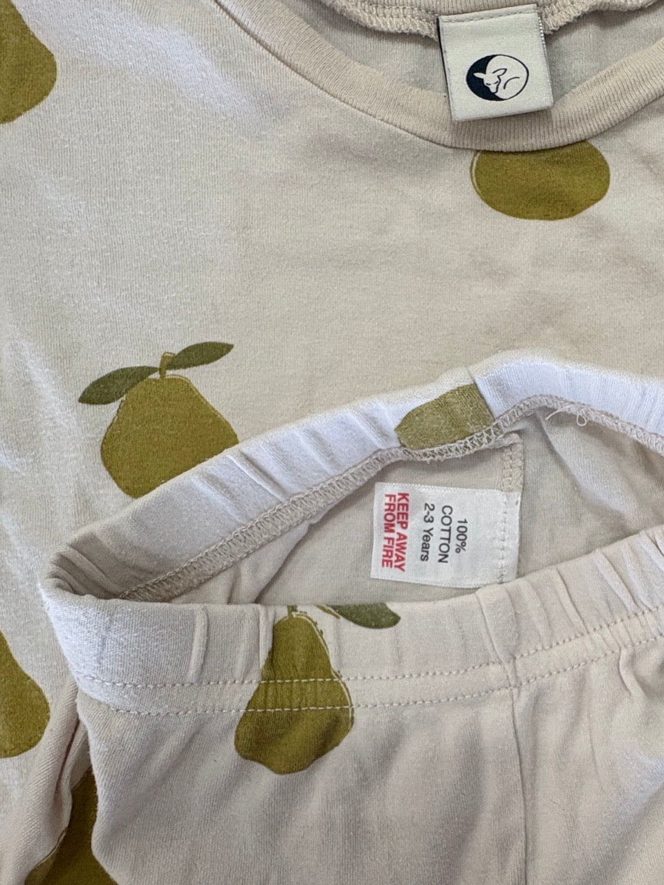 Sleepy Doe, Unisex Pear Cotton Pyjama Set, EUC, Size 2-3