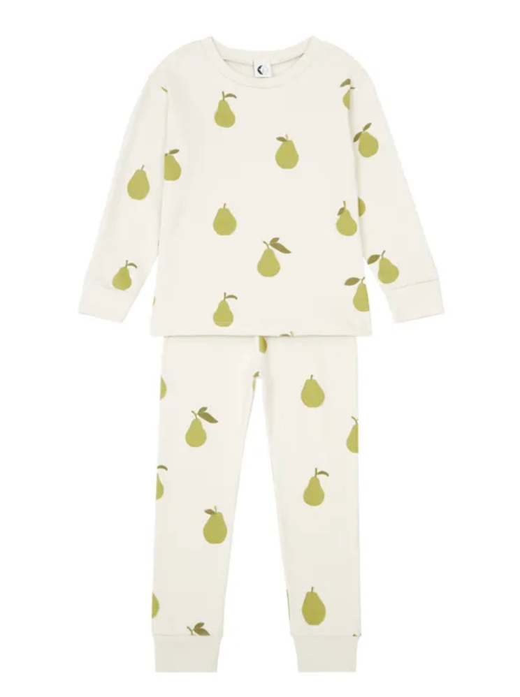 A unisex kids PJ set in our hand drawn autumnal Pear print. This classic silhouette with fitted cuffs is fuss free for a comfortable night's sleep.