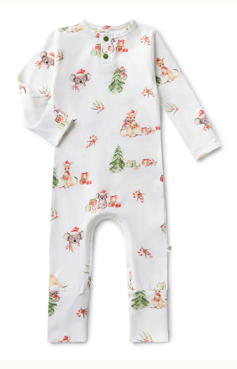 Designed for newborns and little adventurers, the Organic Growsuits from SHK are an all-in-one onesie that is both functional and beautiful. Soft and stretchy, our growsuits are an easy-care, fuss-free option that’s easy to wear thanks to their modern, fitted style. Kangas & Koalas is part of our Limited Edition 2024 Christmas Collection