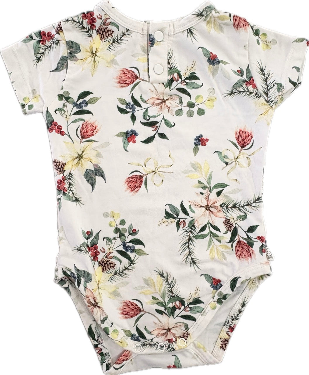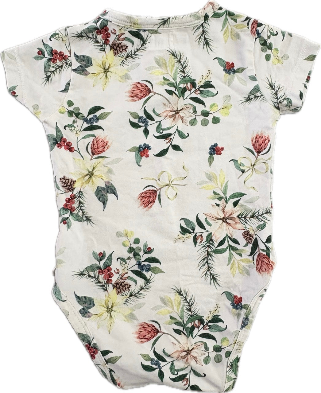 Snuggle Hunny SNUGGLE HUNNY, ORGANIC SHORT SLEEVE BODYSUIT - FESTIVE BERRY (LIMITED EDITION), GUC, Size 0 (6-12m)