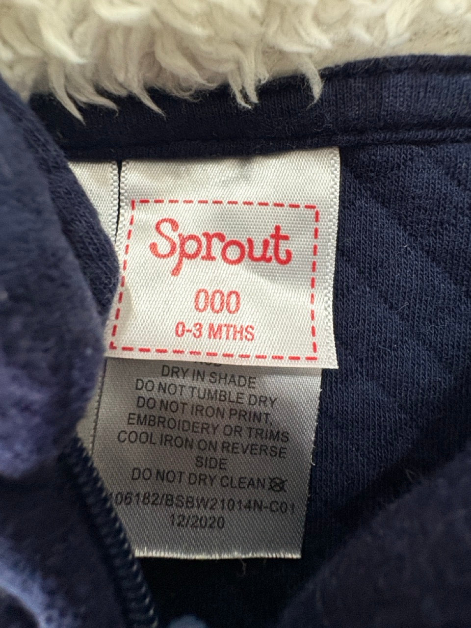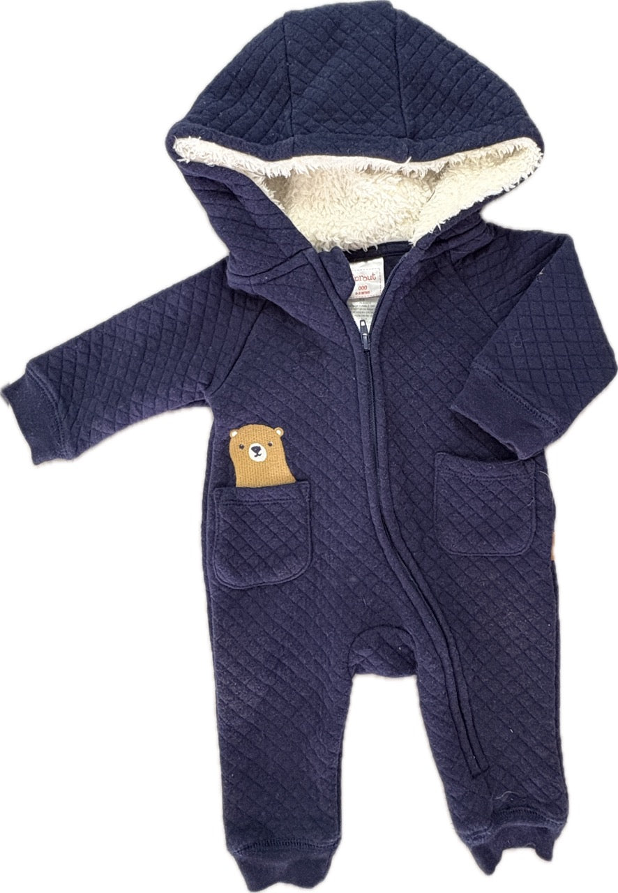 Sprout, Sherpa Lined Bear Quilted Coverall in Blue, EUC, Size 000 (0-3m)