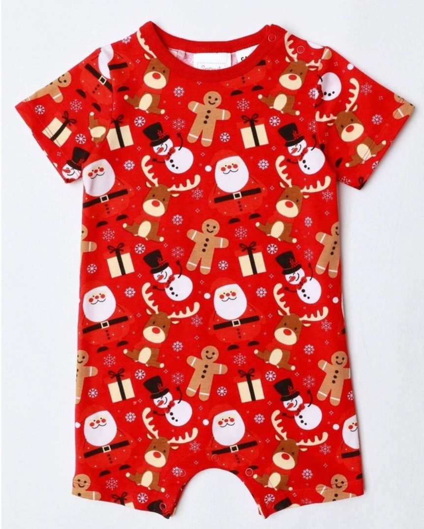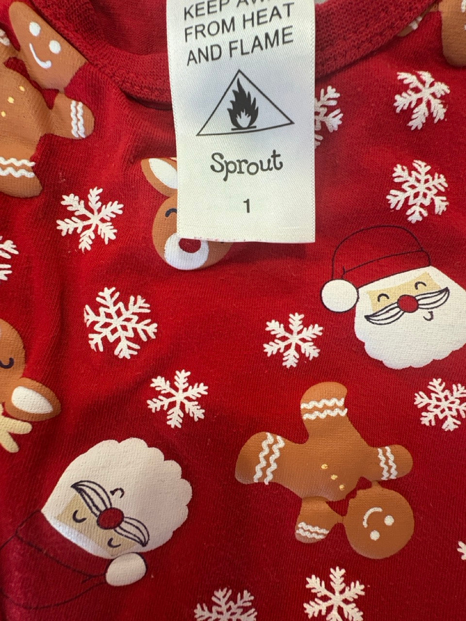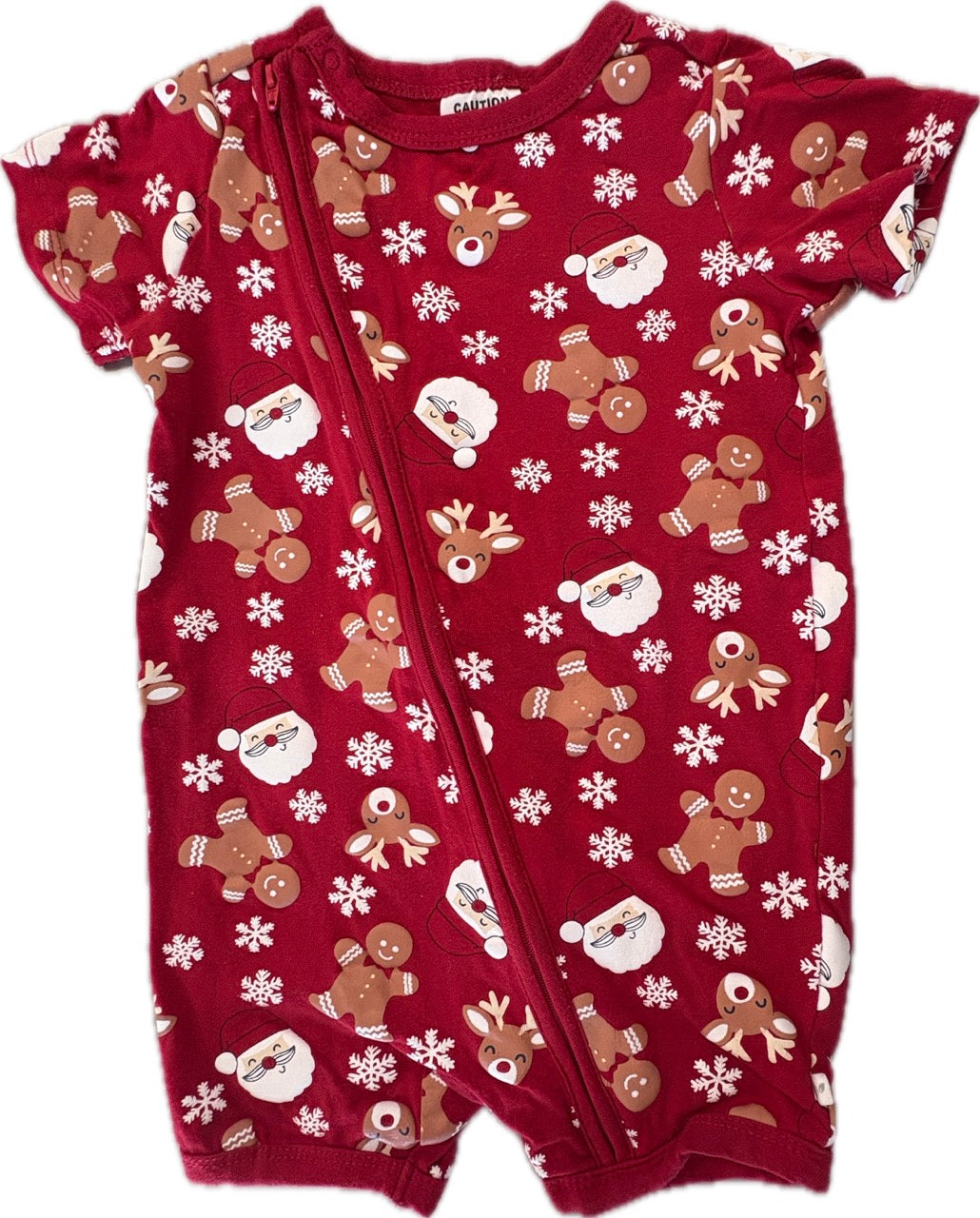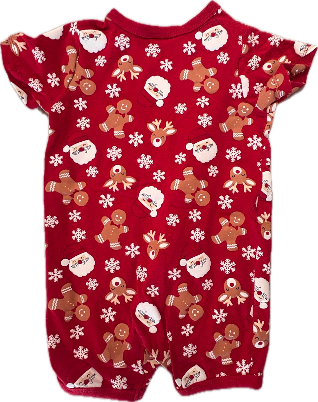 Sprout, Xmas Gingerbread Family Matching Print Romper in Crimson, EUC, Size 1