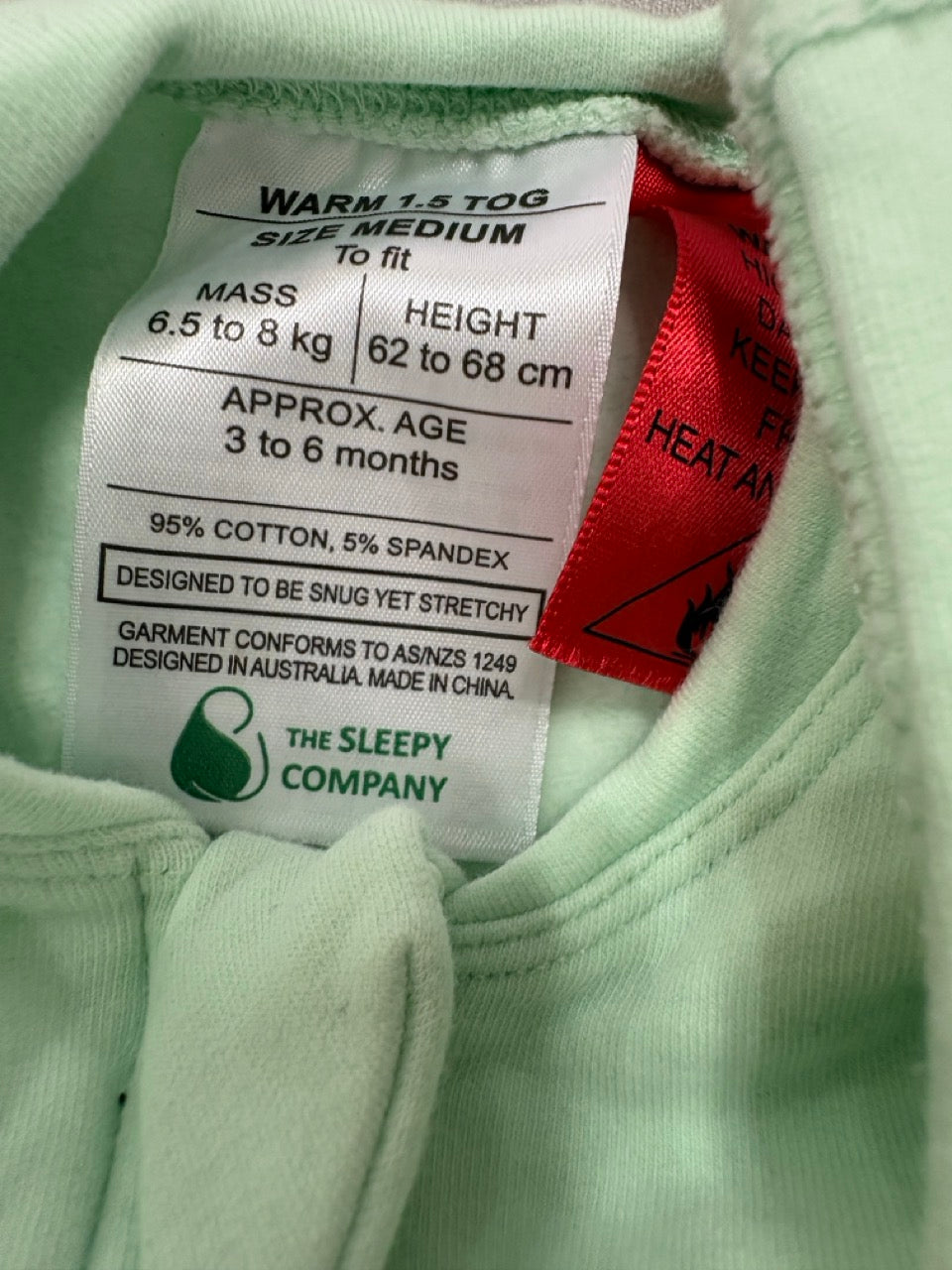 The Sleepy Company, FX (Fetal Flex) Swaddle / Warm Weight 2.5 Tog / Mint, GFUC, Size 00 (3-6m)