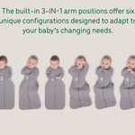 Meet the 3-IN-1 FX Swaddle. Designed in Australia, it comes built-in with 3-IN-1 arm positions (Arms-In, Arms-Free, and Hands-Out) to accommodate your baby’s changing needs, preferences, and development stage.