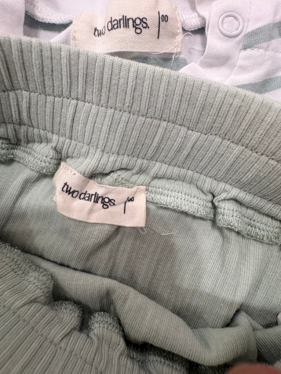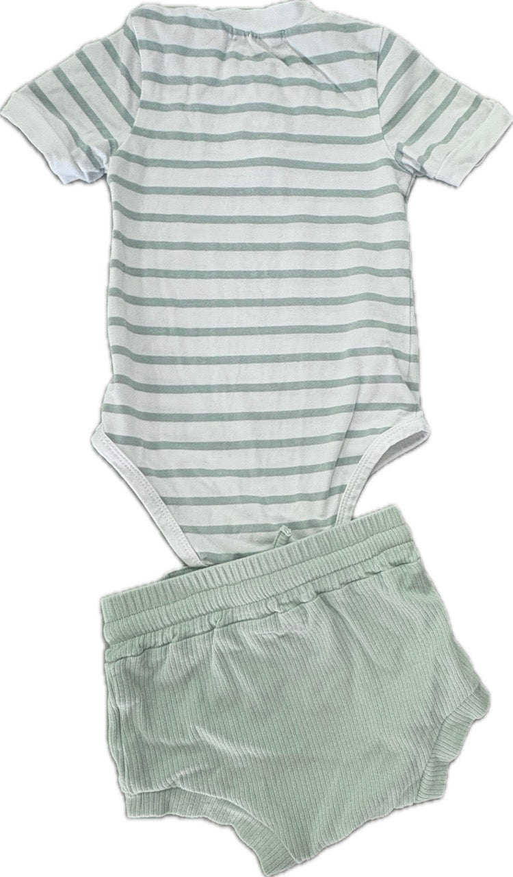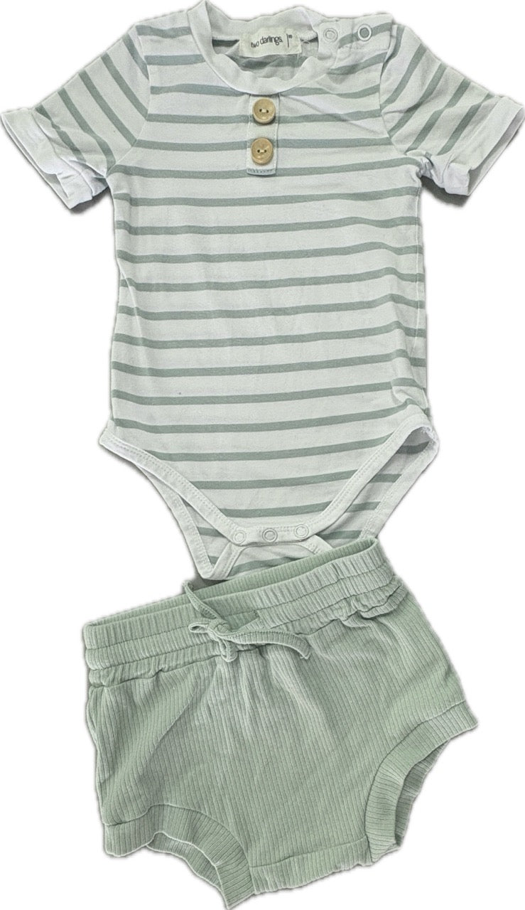 Two Darlings, Olive Stripe Short Set, GUC, Size 00 (3-6m)