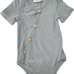 This gorgeous Two Darlings baby bodysuit is available with short sleeves, just in time for Summer! Features 4 wooden buttons down the front with a cross over kimono style bodice. Snaps on the crotch for easy nappy changes are also a must. Pairs perfectly with any of our Harem Pants or Shorties.