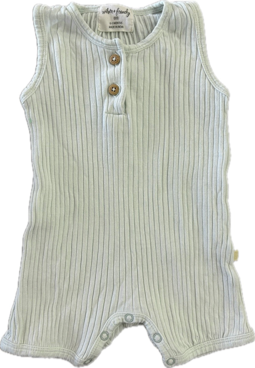 WILSON & FRENCHY Rib Boyleg Growsuit Pale Green, EUC, Size 000 (0-3m)