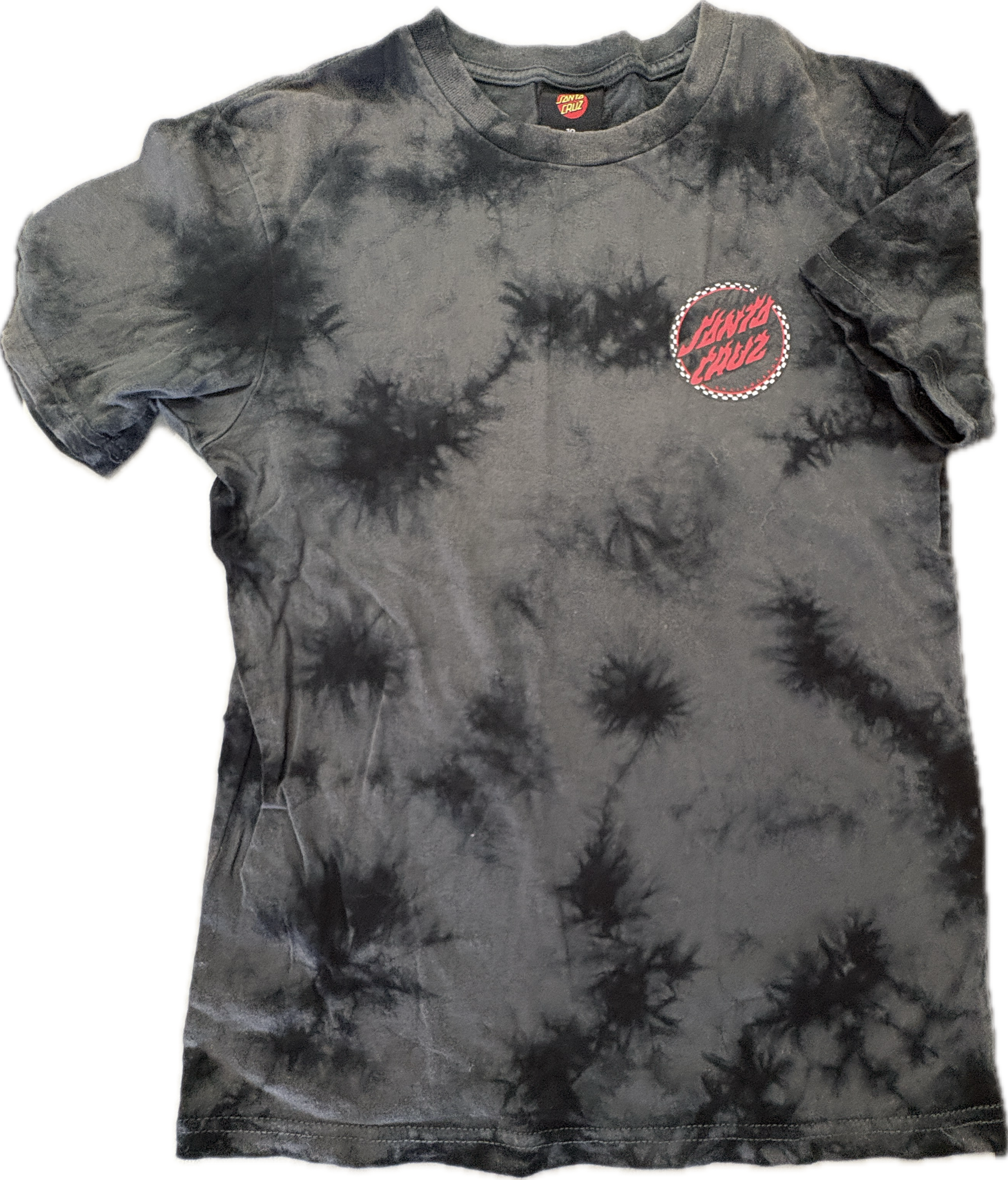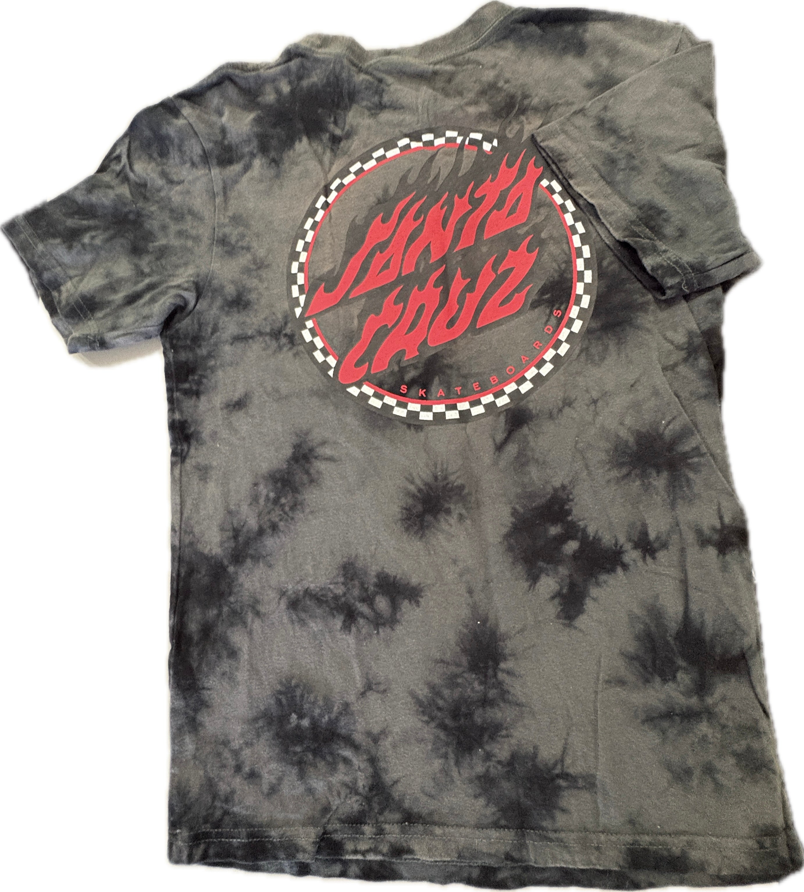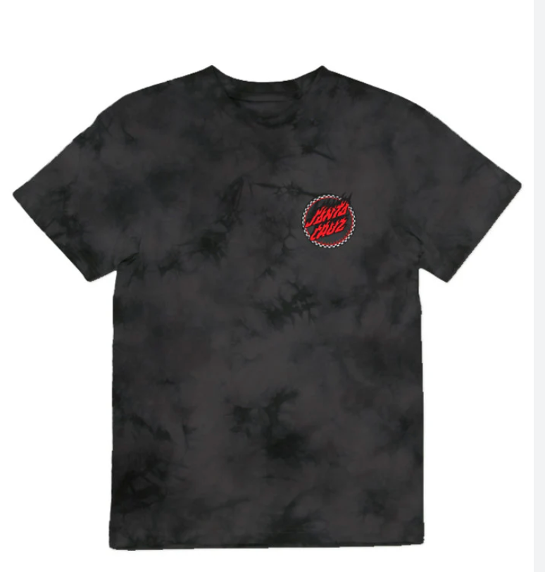 Santa Cruz Checked Out Flamed Dot Tee - Black Tie Dye, EUC, Size 10