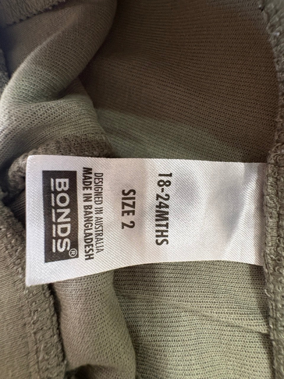 Bonds, Tech Sweats Trackie in Olive, EUC, Size 2 (18-24m)