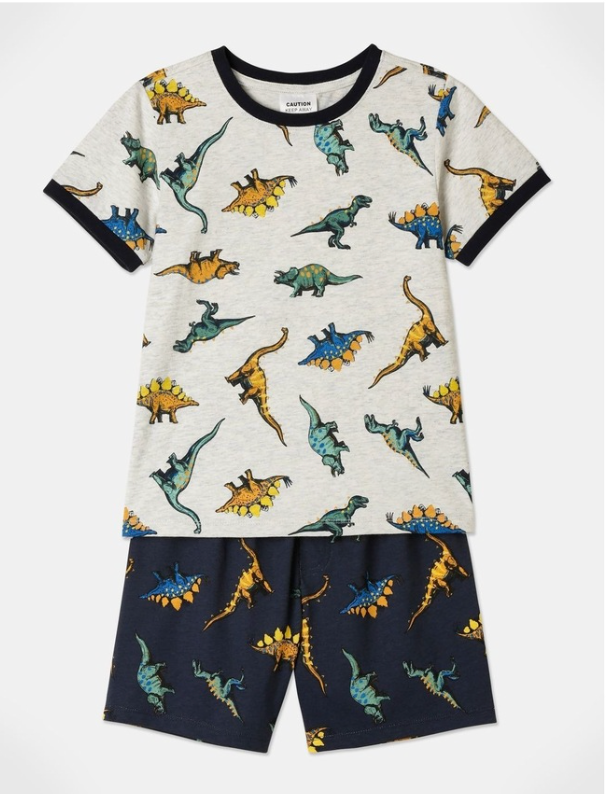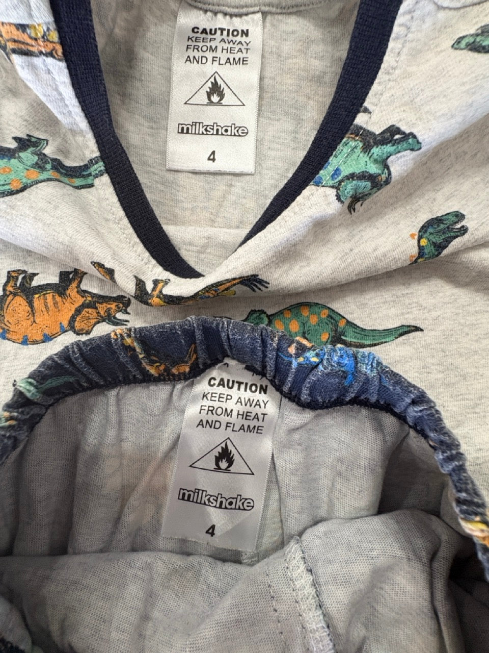 Milkshake, Dino Ringer Tee Pyjama Set In Grey Marle, GUC, Size 4