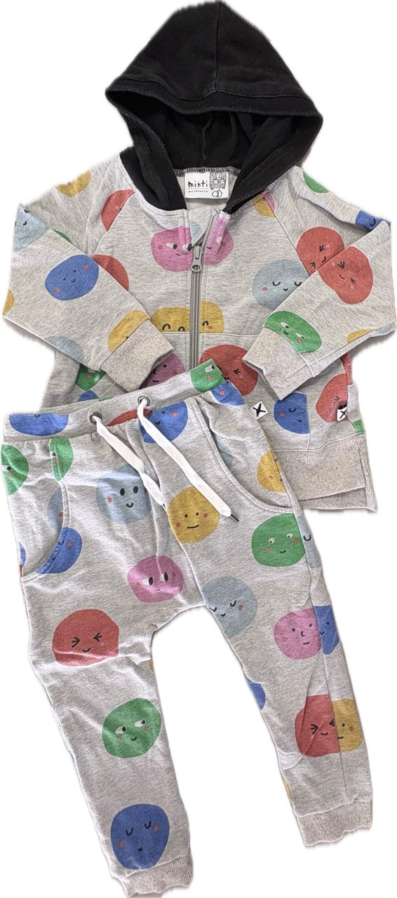Minti, Smilie Hoodie Track Pant Set, EUC, Size 3