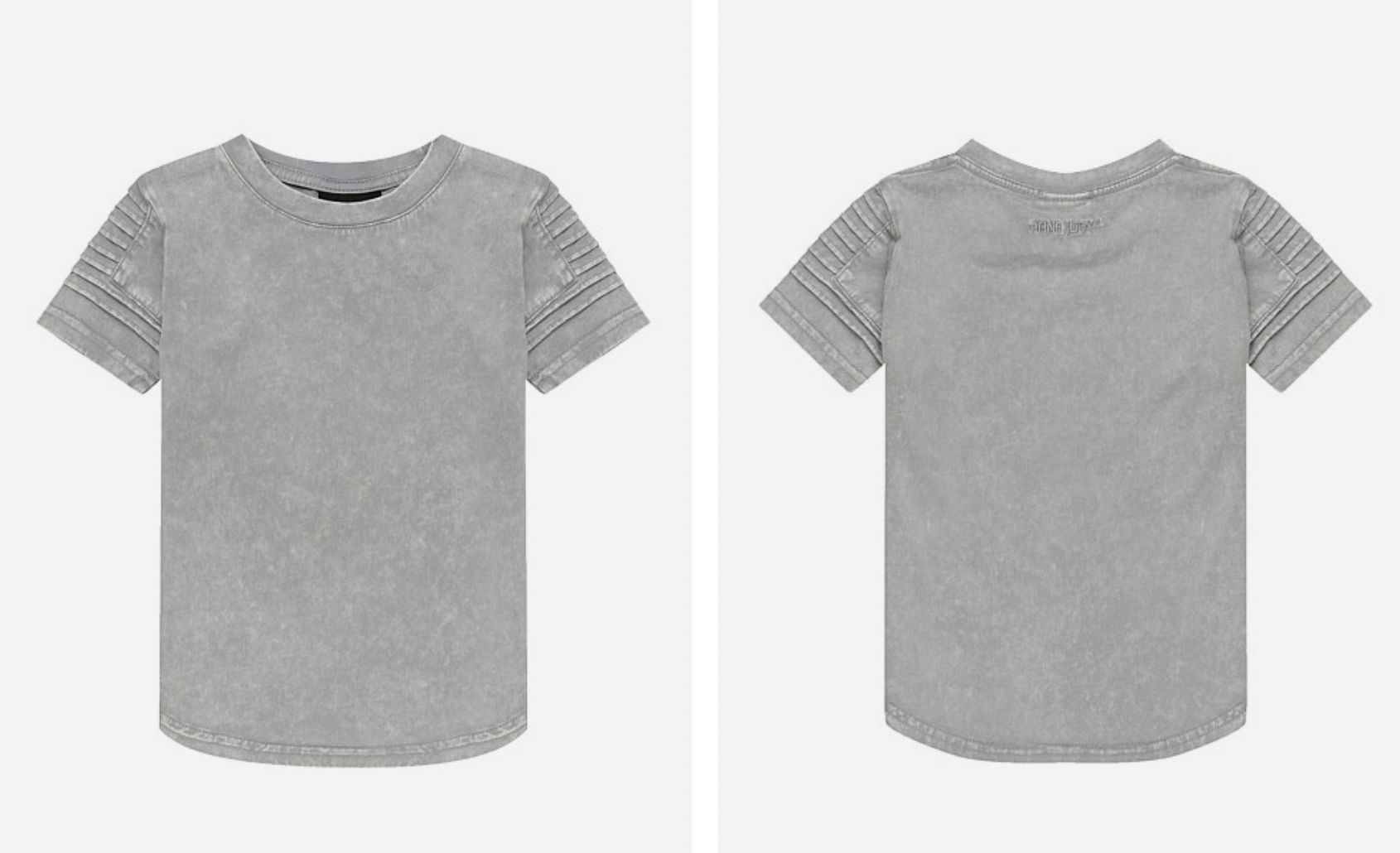 Lead with style and confidence with this best selling premium T-shirt, The Maverick T-shirt in light acid grey from NANA JUDY features detailed horizontal pin-tucking across both sleeves, curved hemline and back neck embroidered logo. The T-shirt is finished in a soft washed 100% Cotton fabrication. 100% Cotton