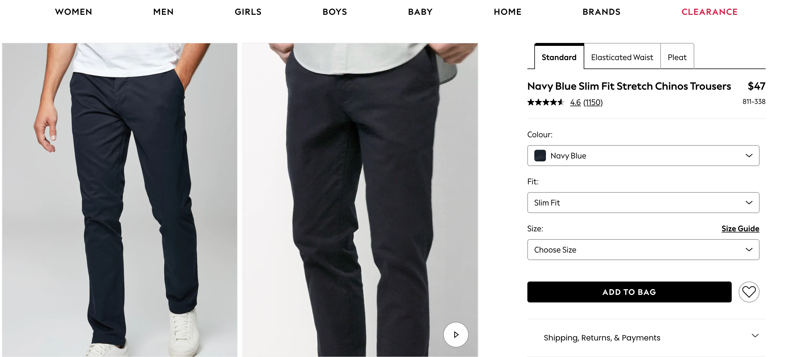 A wardrobe staple; our versatile navy chino trousers are made from a cotton stretch fabric for comfort and style all in one.