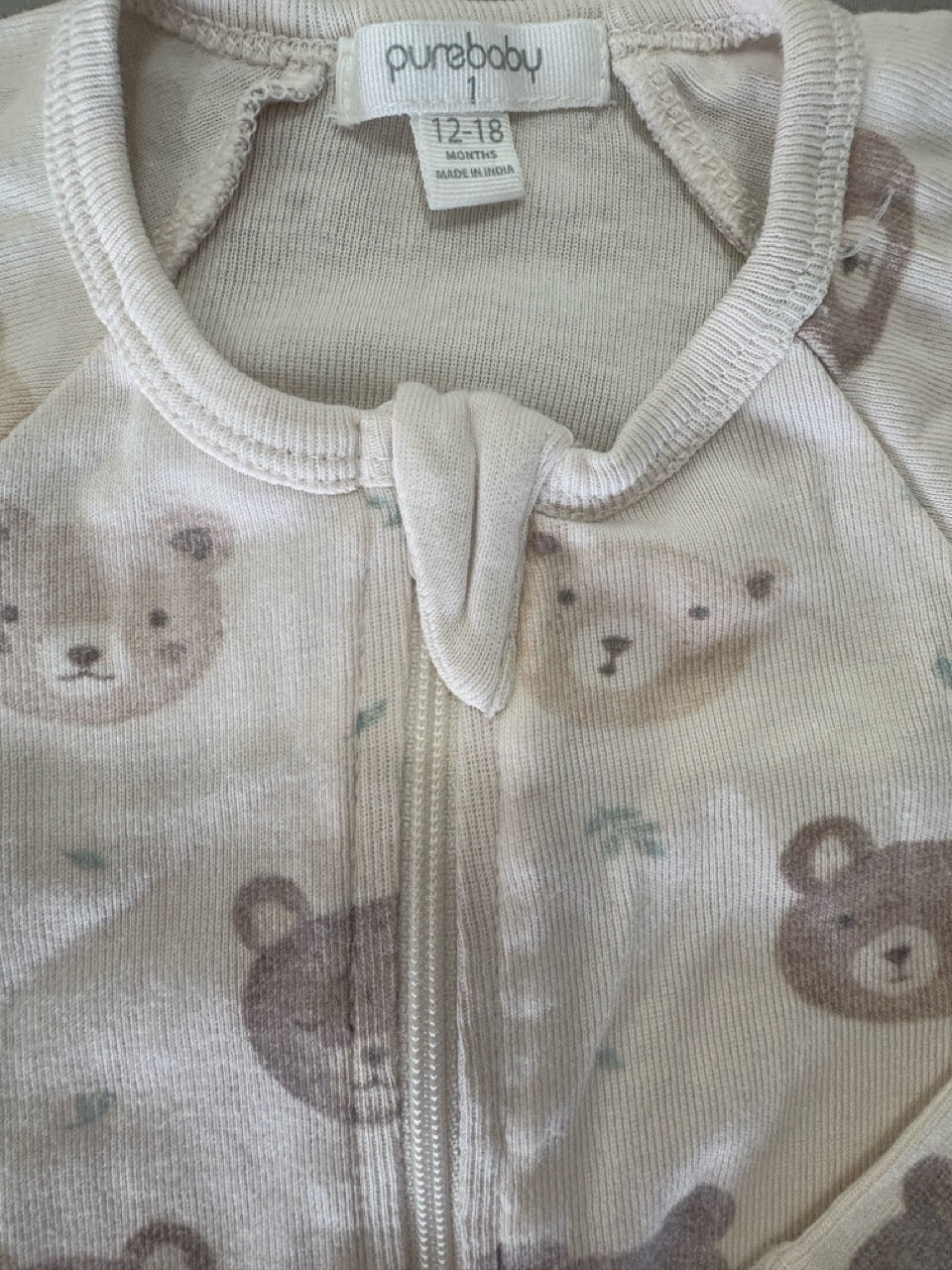 Purebaby, Bear Footed Onesie, GFUC, Size 1 (12m)