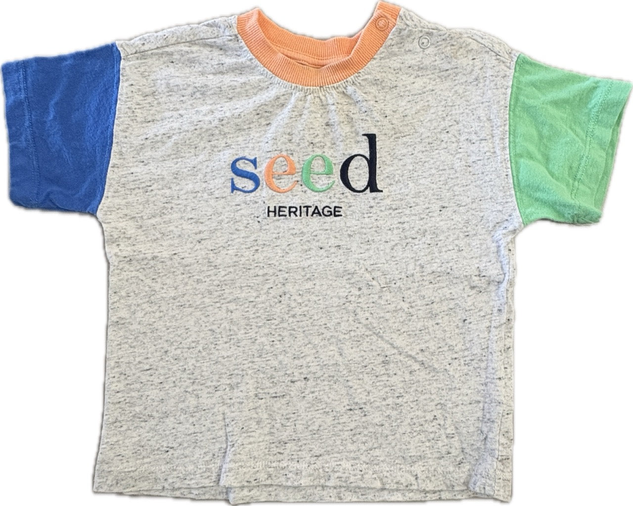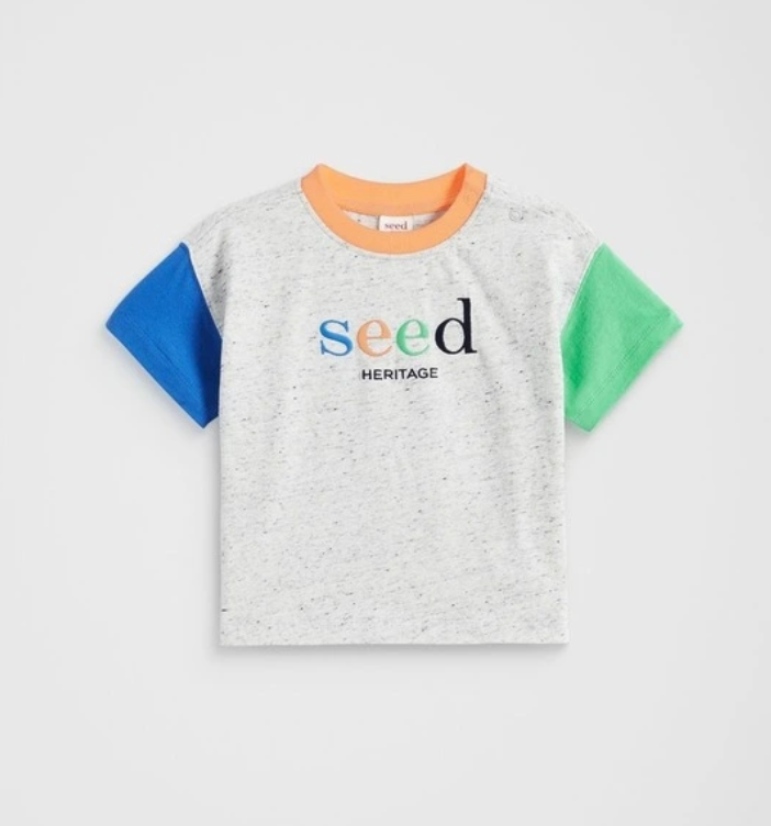Seed Heritage, Colourblock Logo Tee in Cloudy Marle, GFUC, Size 1 (12-18m)