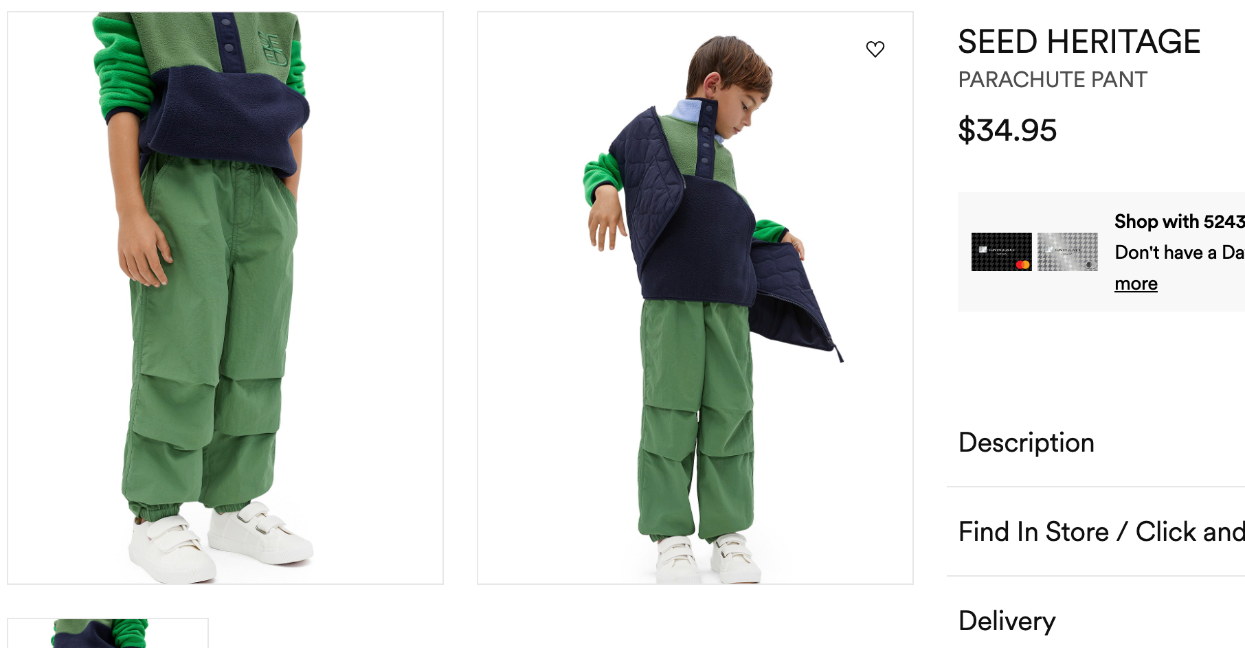 SEED HERITAGE PARACHUTE PANT Green, EUC, Size 4