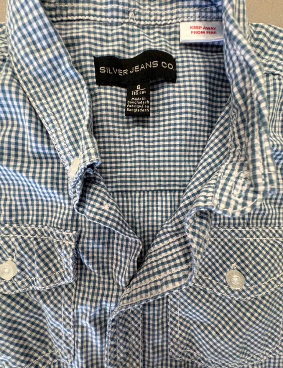 Silver Jeans Co, Boys Gingham Collared Top, GUC, Size 6