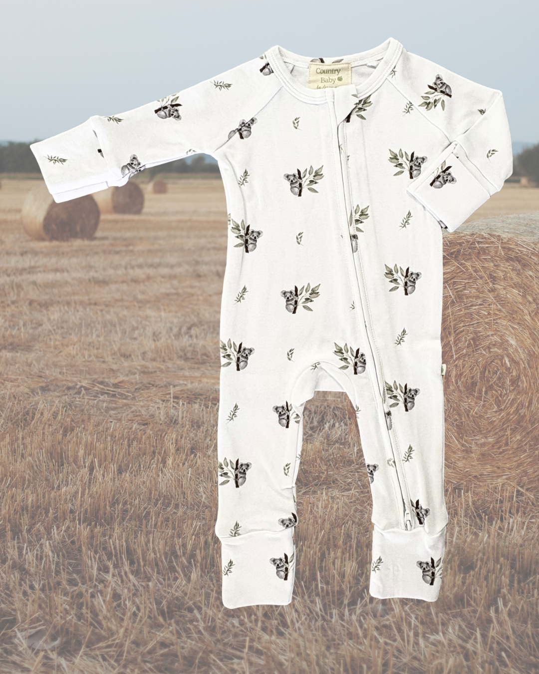• 'Country Koala' Organic Romper: Soft, breathable, and featuring our cherished koala and eucalyptus print.