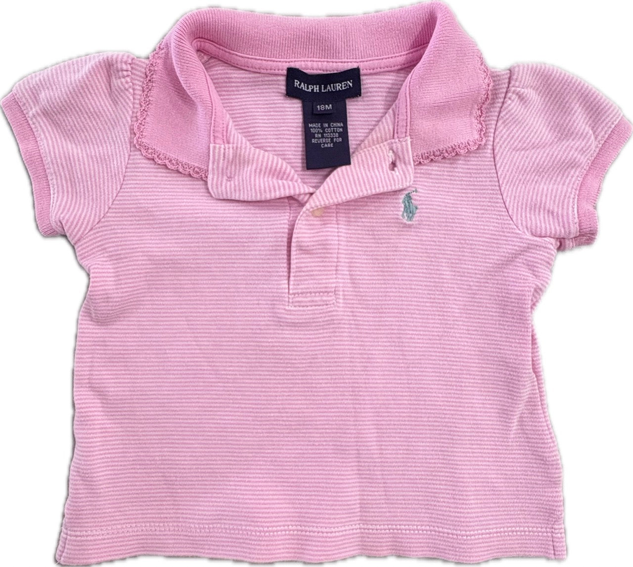 Ralph Lauren Girls Pink Logo Polo Shirt, EUC, Size 2 (18-24m)