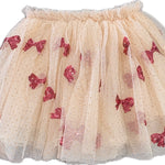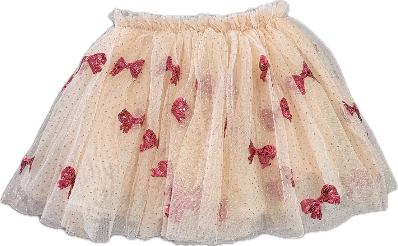 Sparkly skirt with voluminous tulle layers and a soft elastic waist.