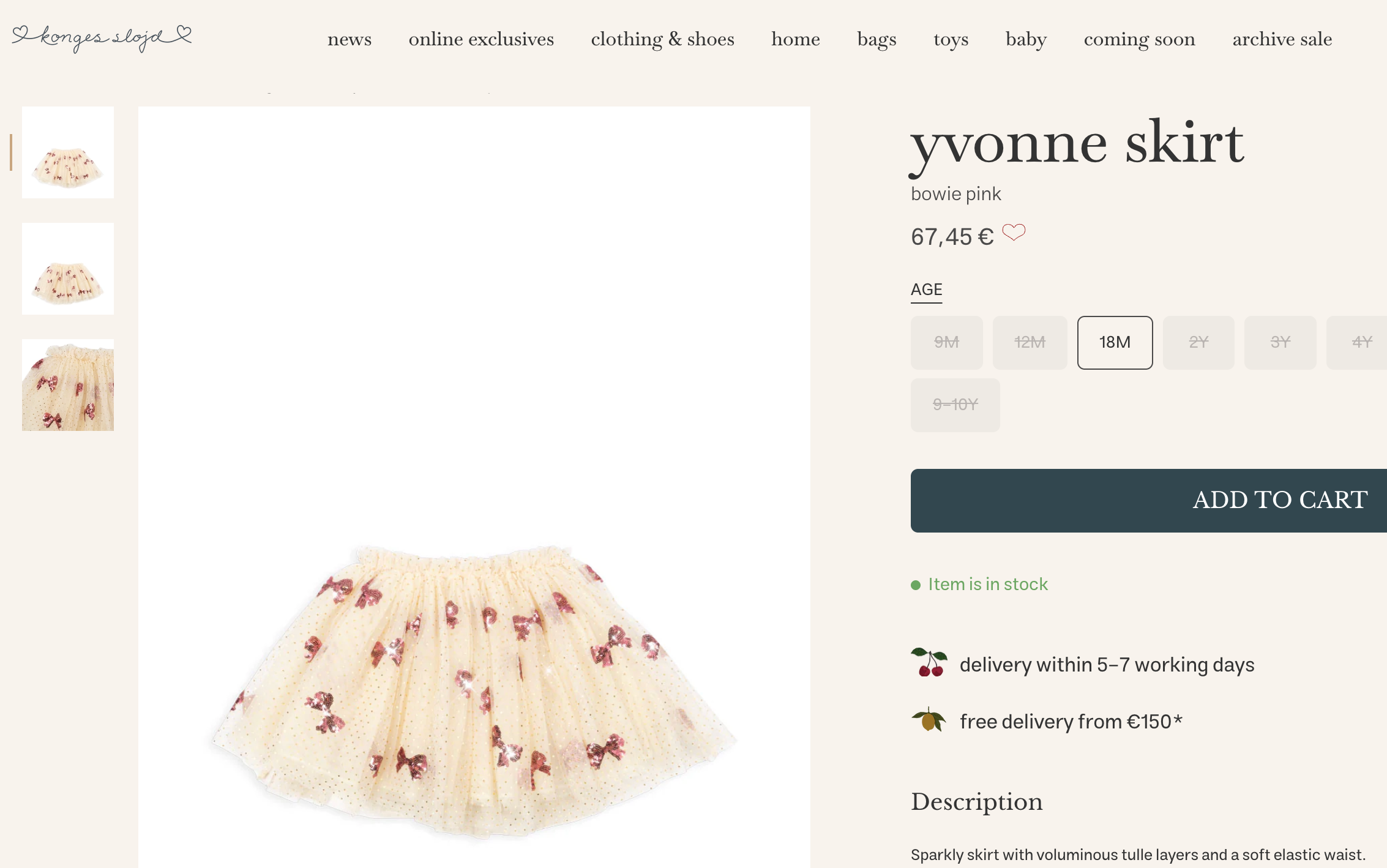 konges sloejd, YVONNE SKIRT bowie pink, EUC, Size 3