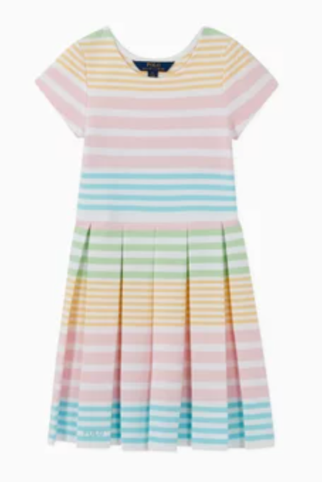 Polo Ralph Lauren delivers a fun, fresh and feminine finish with the Pleated Ribbed Dress.