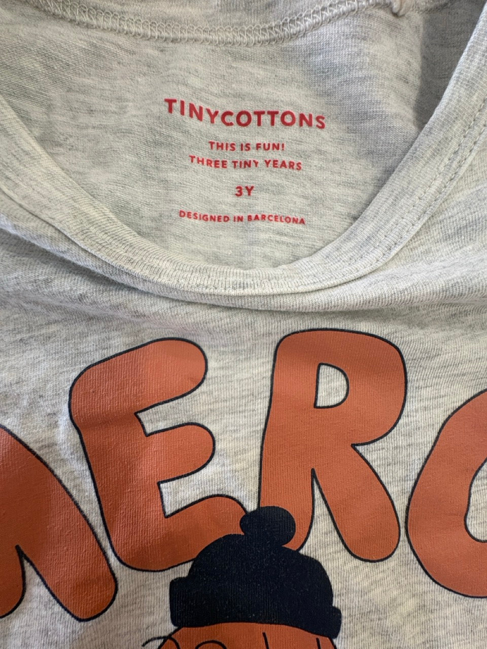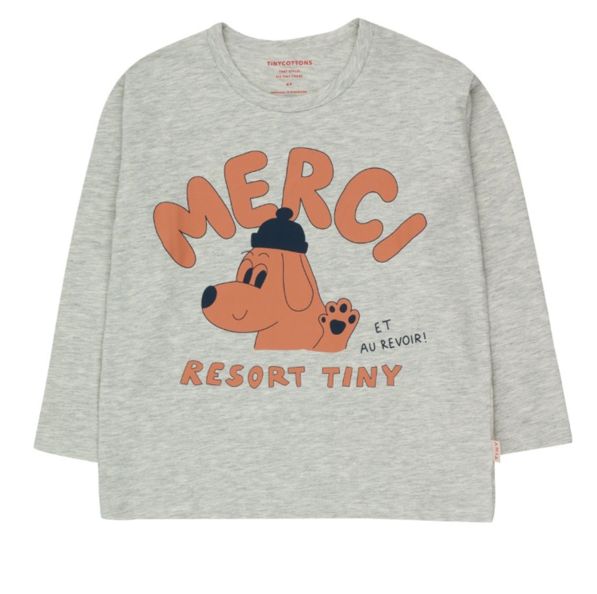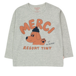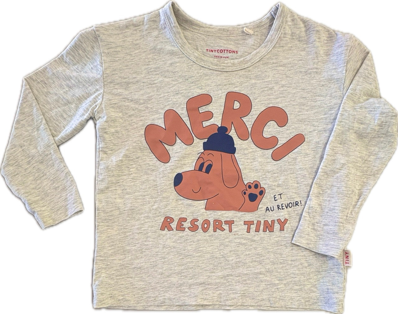 Tiny Cottons, Designer MERCI TEE /light grey heather, EUC, Size 3