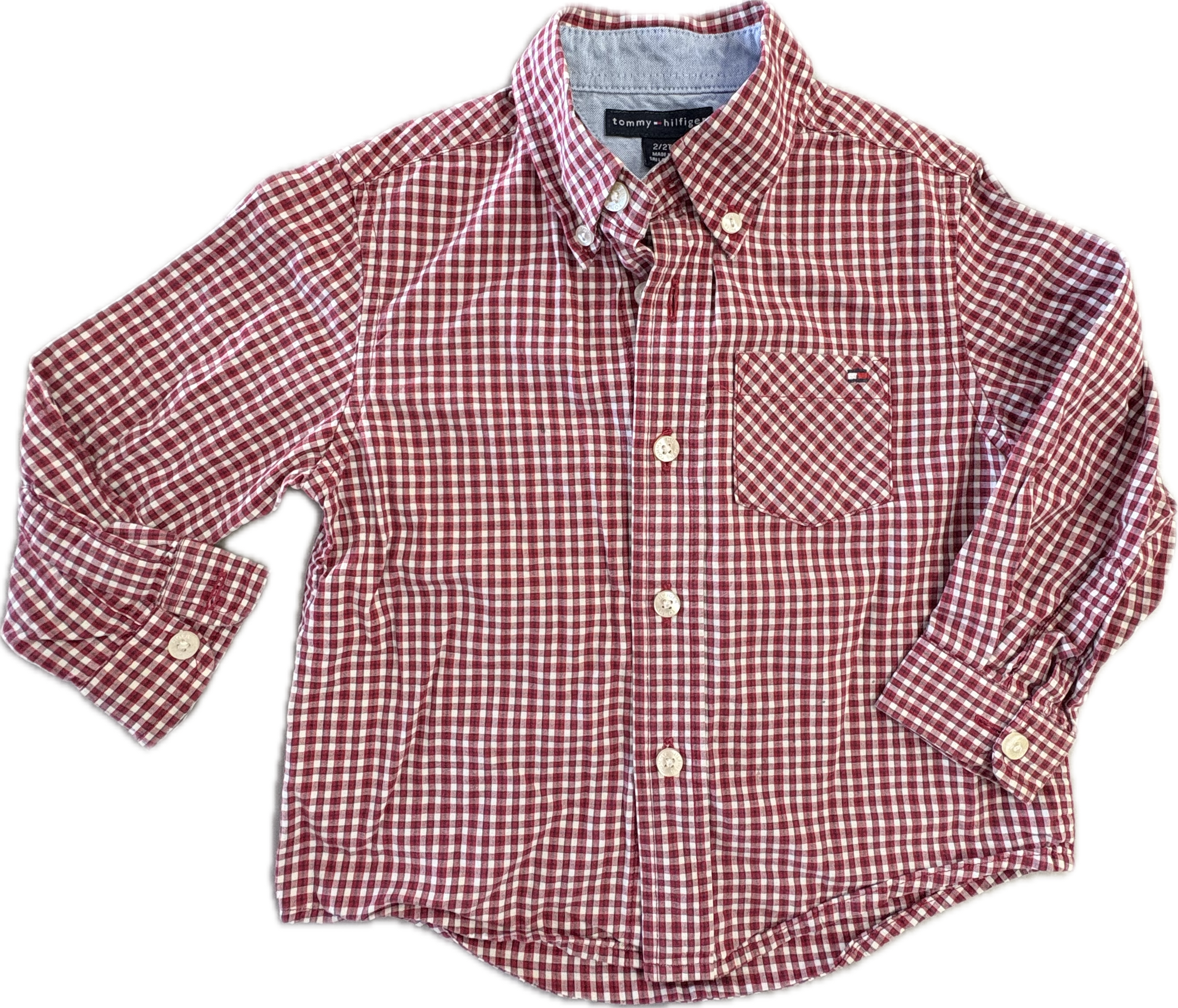 Tommy Hilfiger, Plaid Red Long Sleeve Collared Top, EUC, Size 2