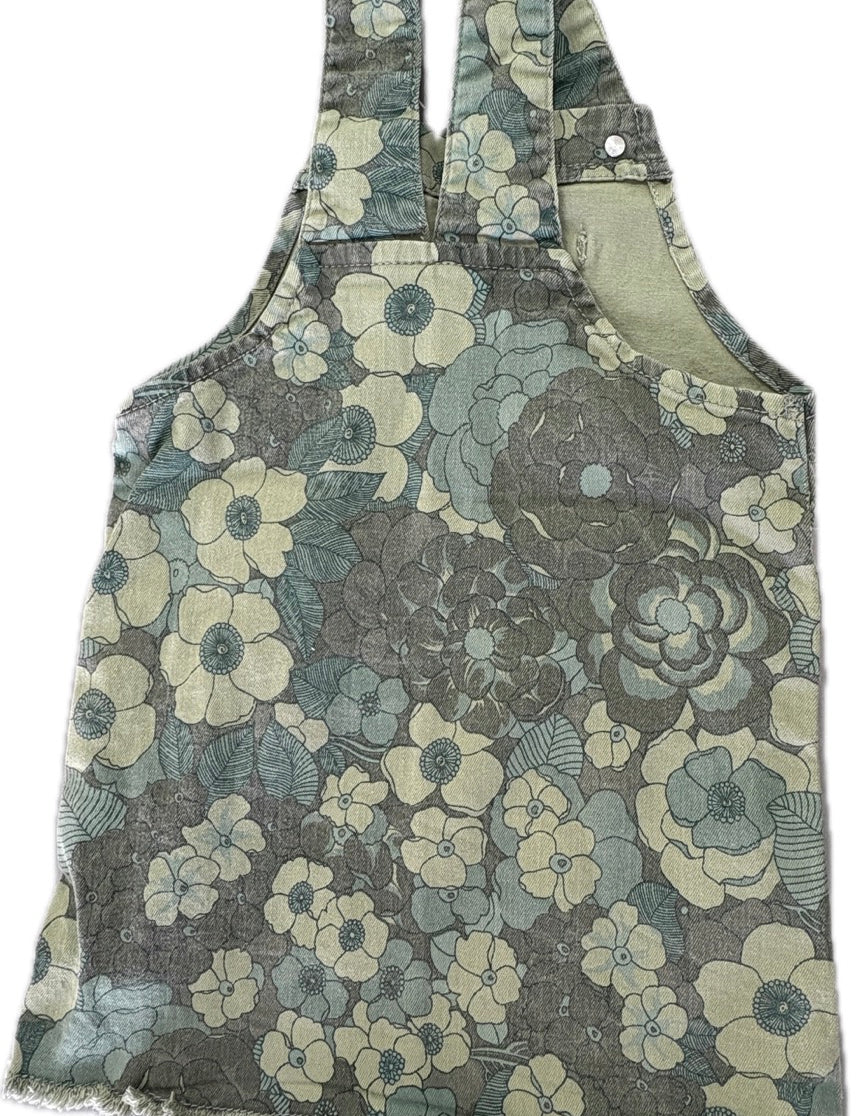 Cotton On, Green Floral Denim Pinafore Dress, GUC, Size 4