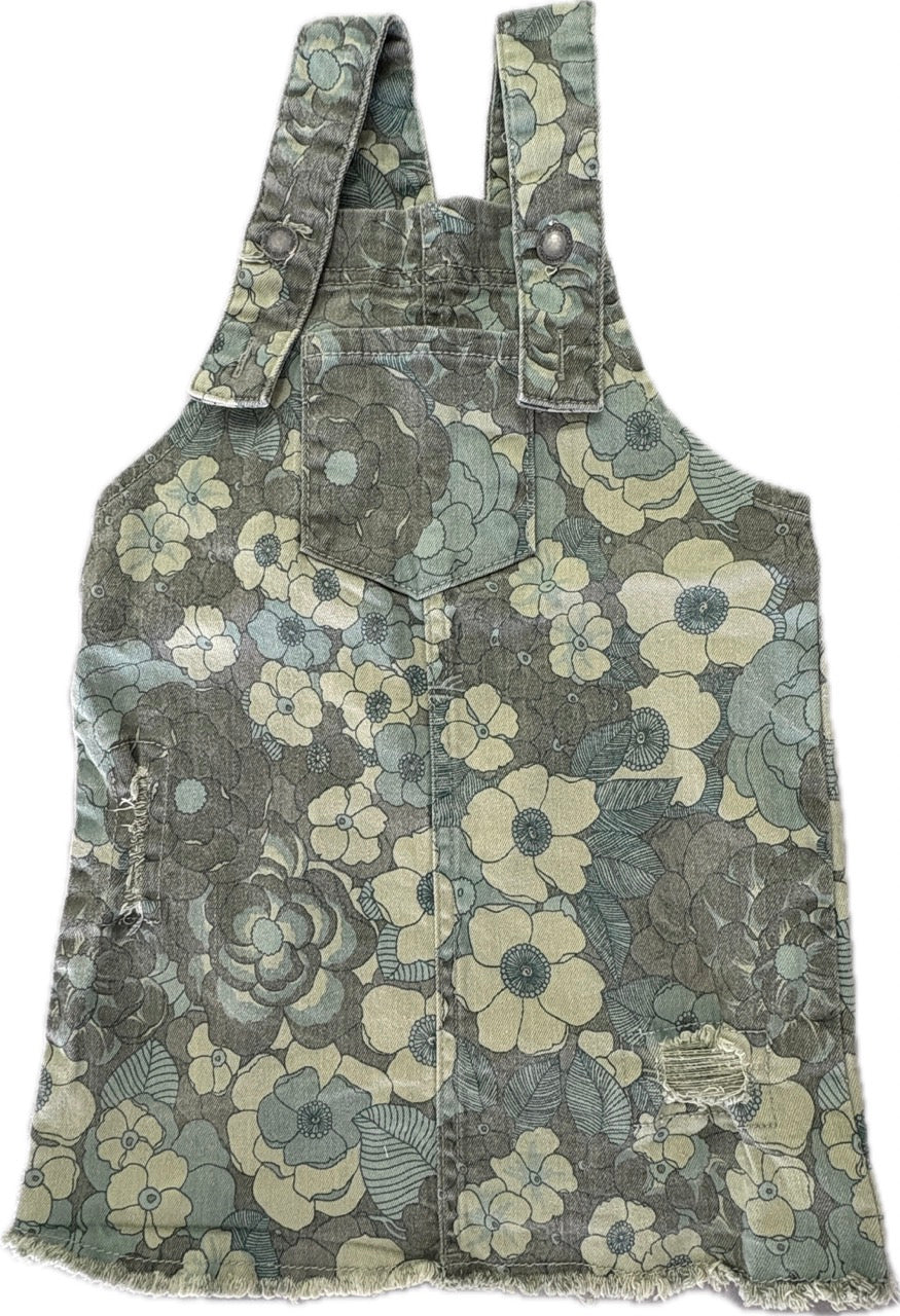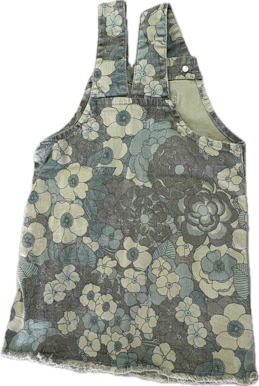 Cotton On, Green Floral Denim Pinafore Dress, GUC, Size 4