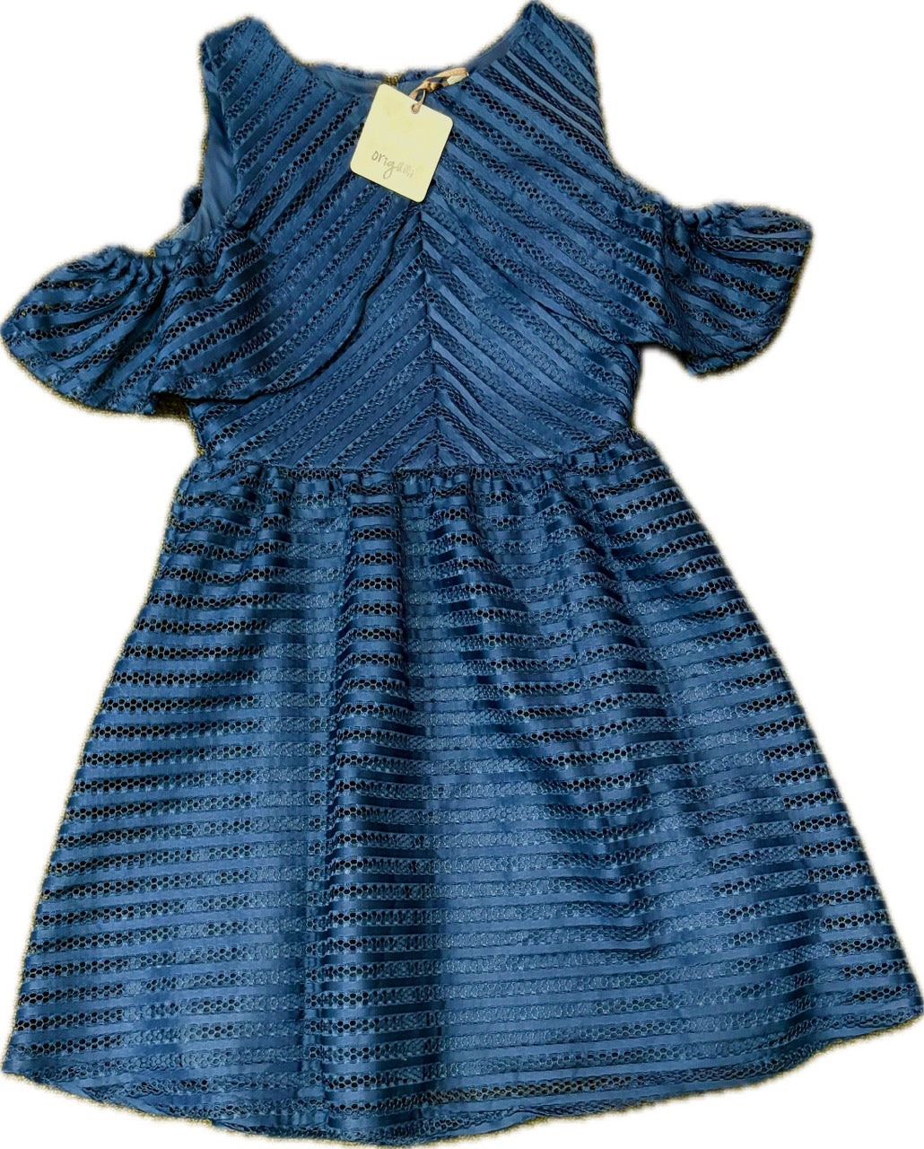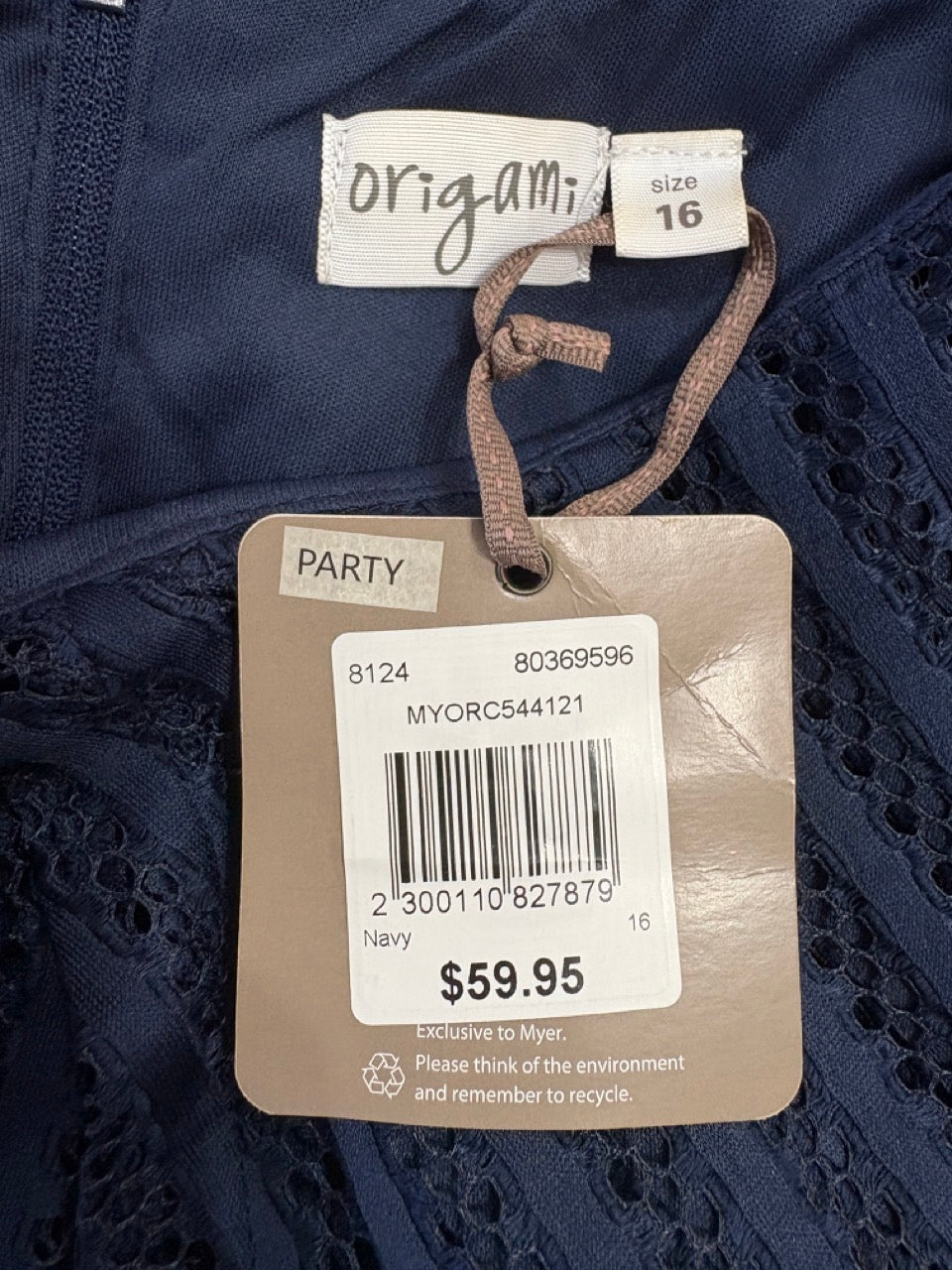 Origami Aubery Stripe Off The Shoulder Dress Navy, NWTS, Size 16