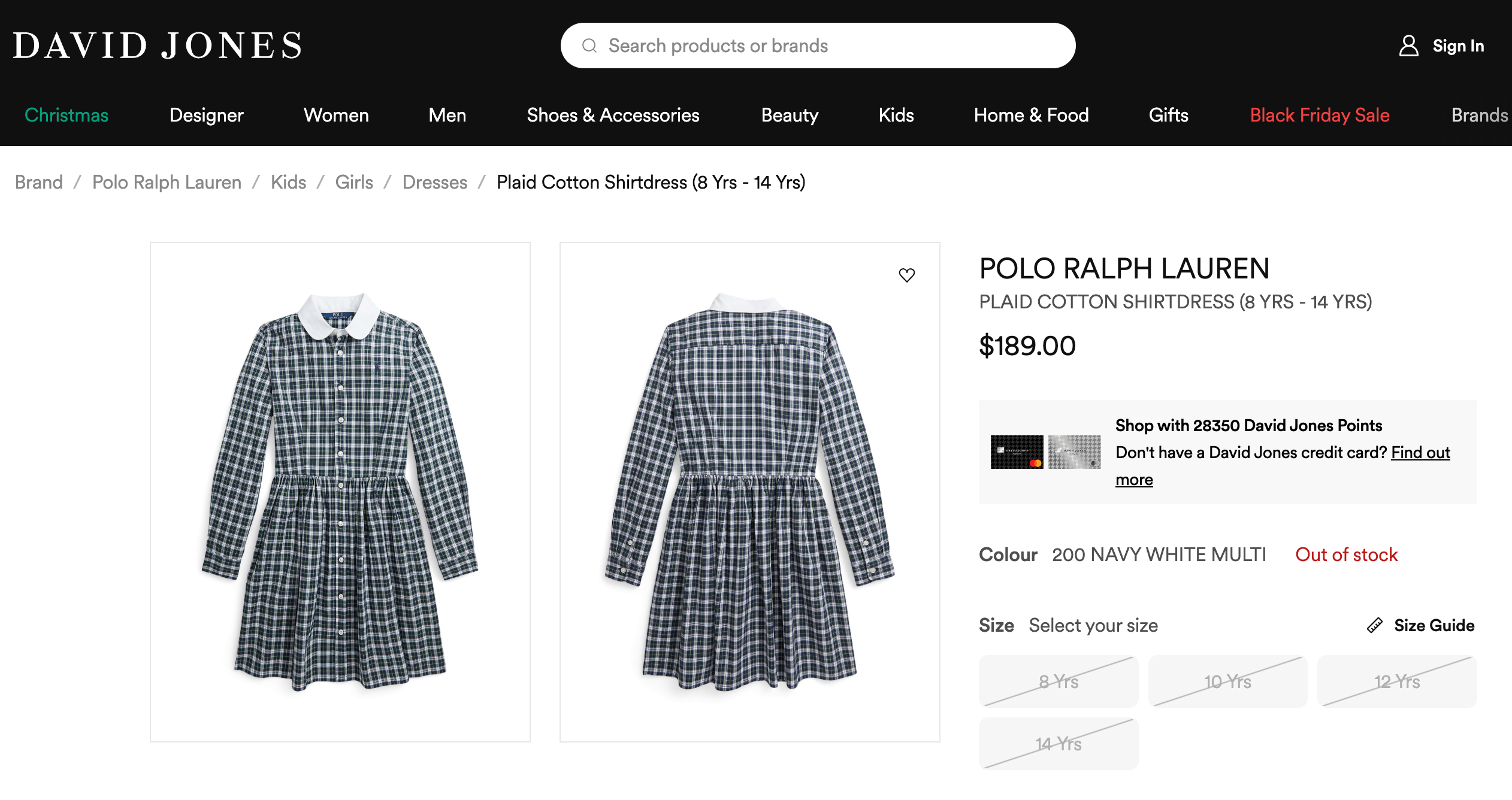 Polo Ralph Lauren Plaid Cotton Shirtdress, EUC, Size 7