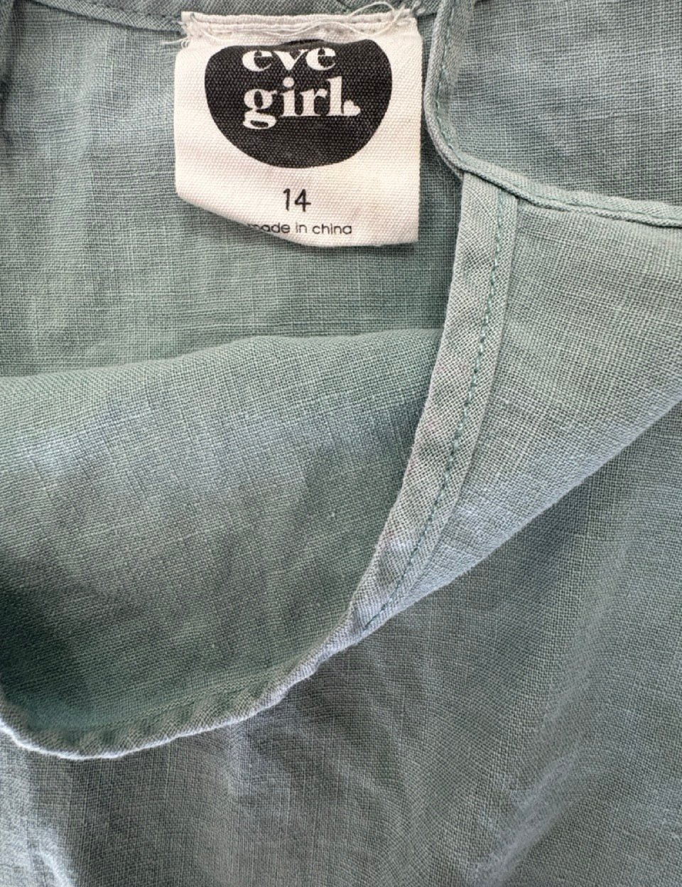 Eve Girl, Linen Cotton Sage Top, EUC, Size 14