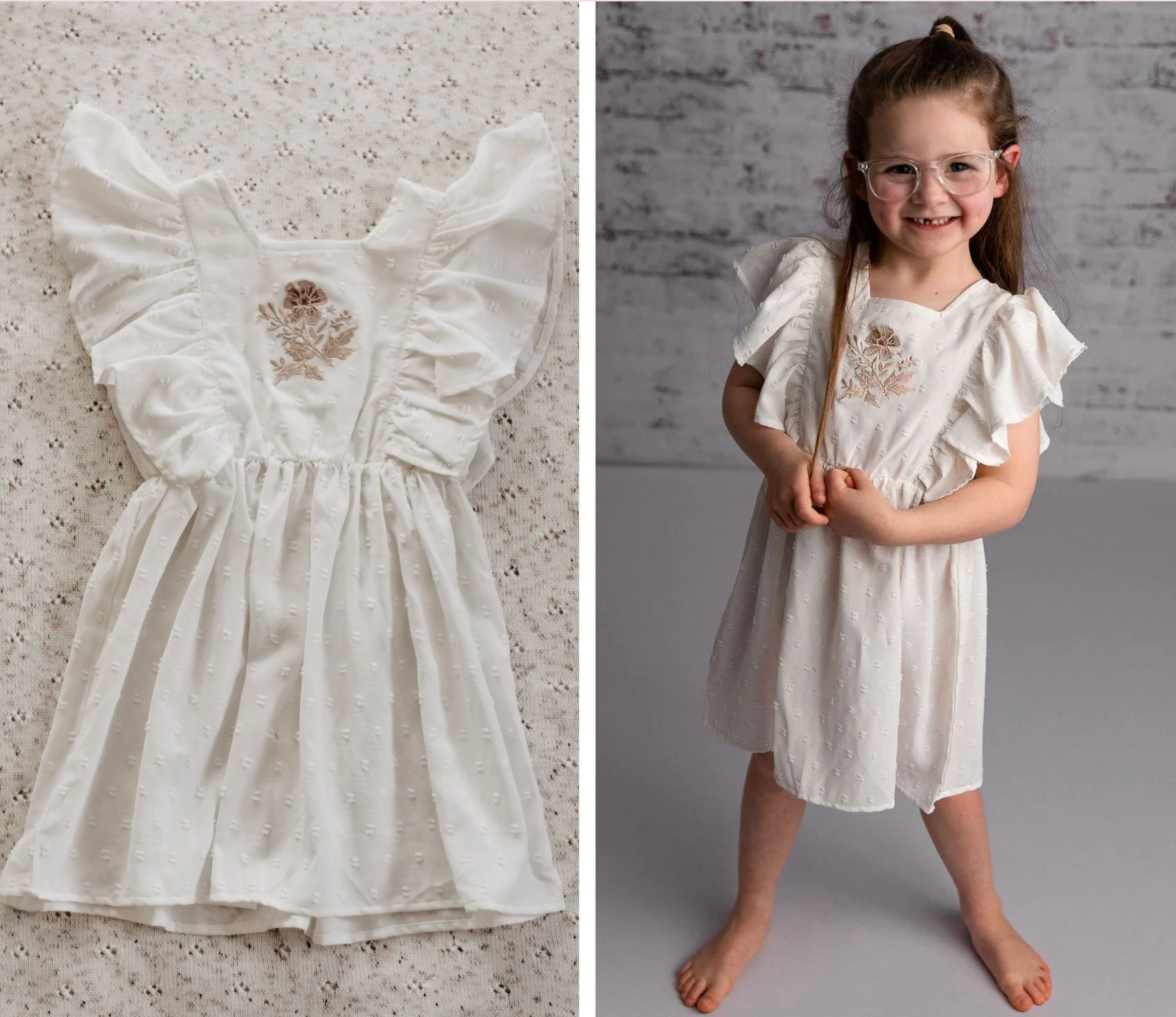 The sweetest little Playsuit/ Dress (playsuit for the babes size 1 and under and a dress for sizes 2 and above) the Bencer & Hazelnut Noel Embroidered Dress/Playsuit is a must for Christmas, Santa Photos or year round wear.