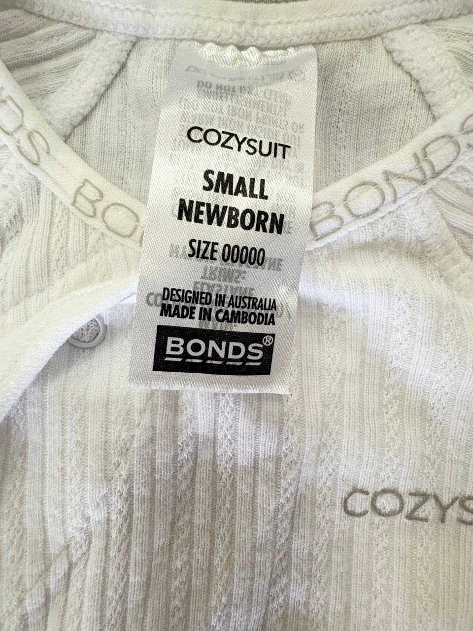 Bonds, Baby Pointelle Cozysuit in White, EUC, Size 00000 (Prim)