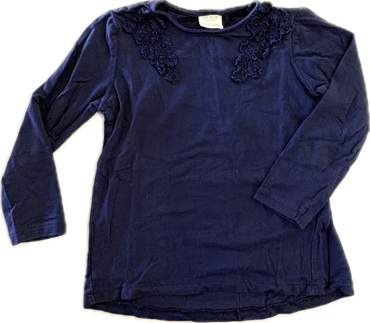 Zara, Navy Long Sleeve Shoulder Embroidered Top, EUC, Size 5